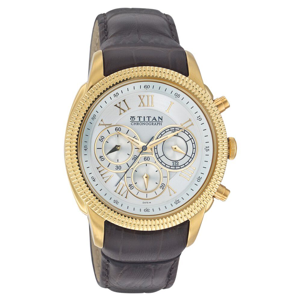 Titan Chronograph White Dial Chrono Quartz Leather Strap watch for Men-NH9234SL01E