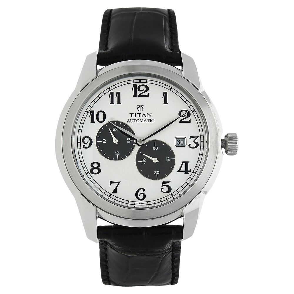 Titan Automatic White Dial Leather Strap watch for Men-NH90032BL01J