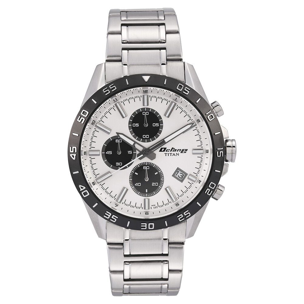 Titan Octane White Dial ChronoStainless Strap watch for Men-NC9348SM02J