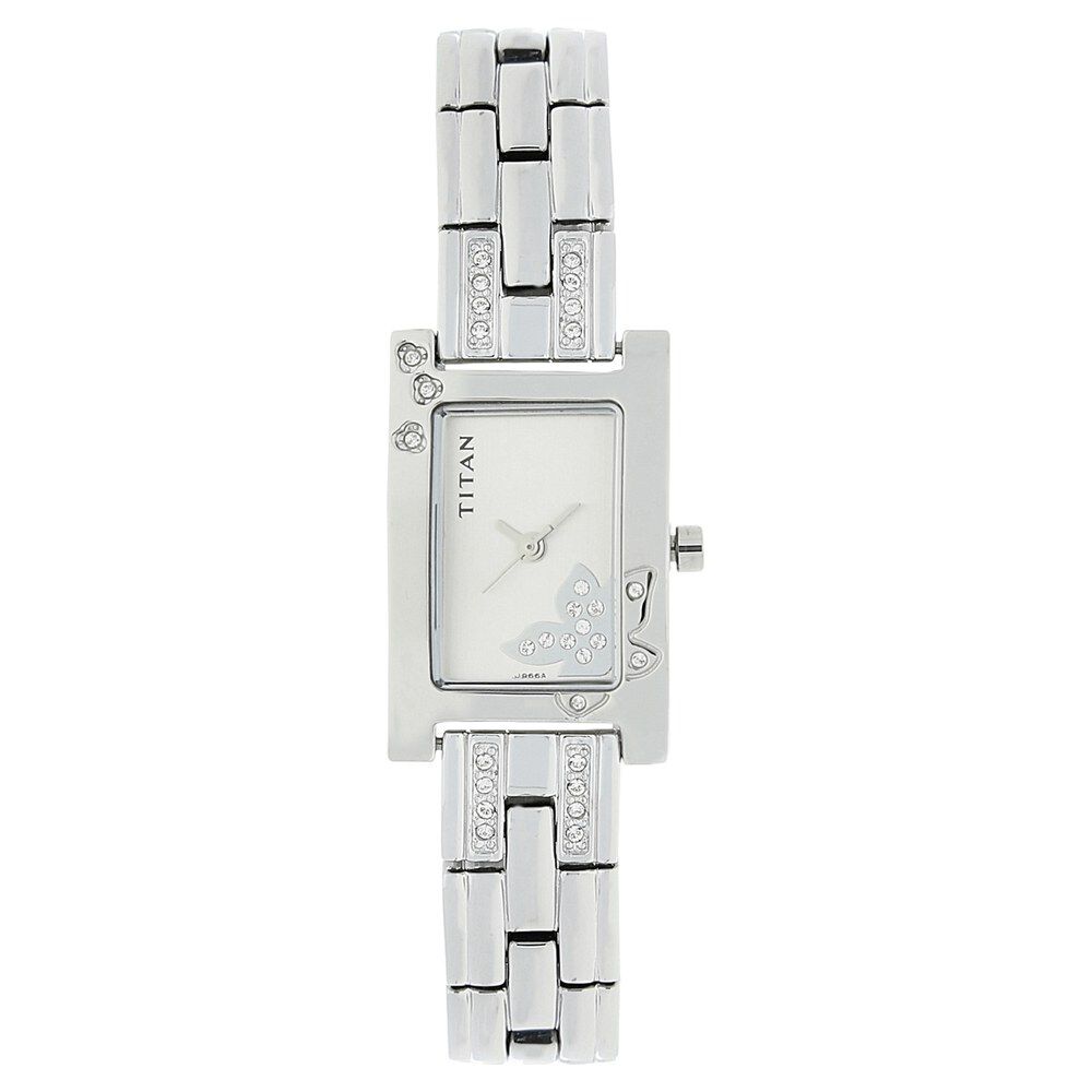 Titan Quartz Analog White Dial Stainless Steel Strap Watch for Women NS917BM01