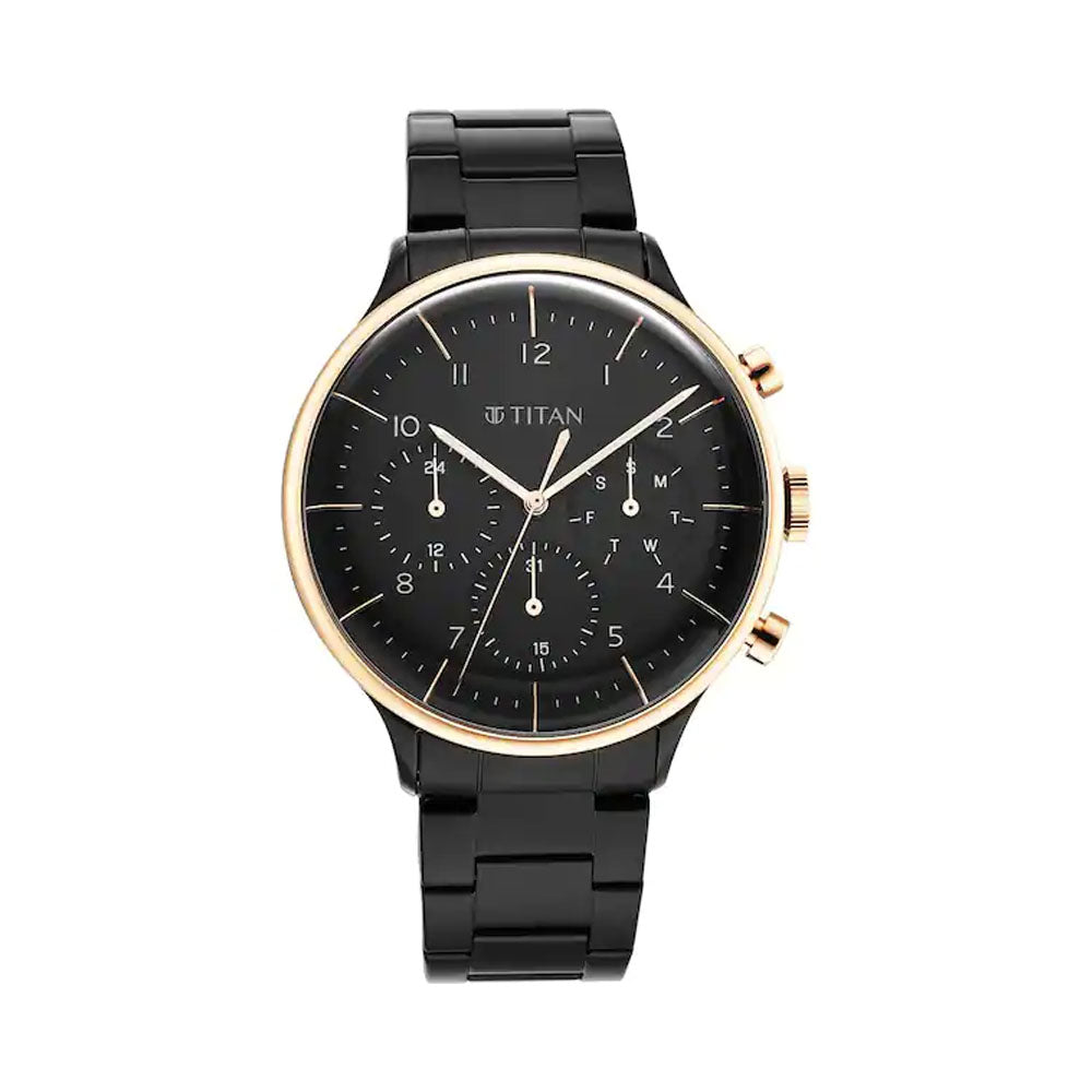 Titan Sapphire Multifunction Quartz Analog with Day and Date Green Dial Leather Strap Watch for Men