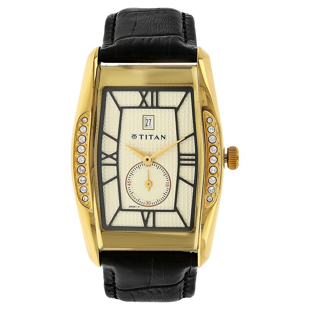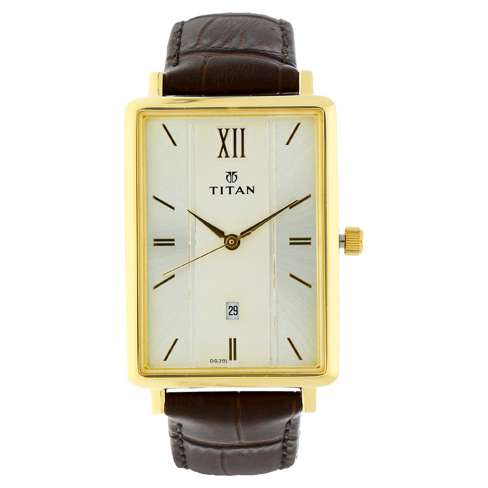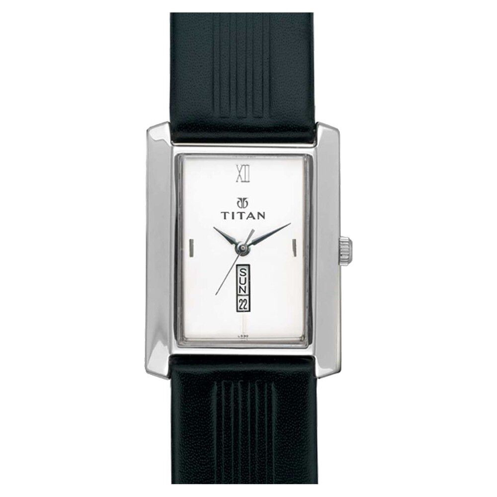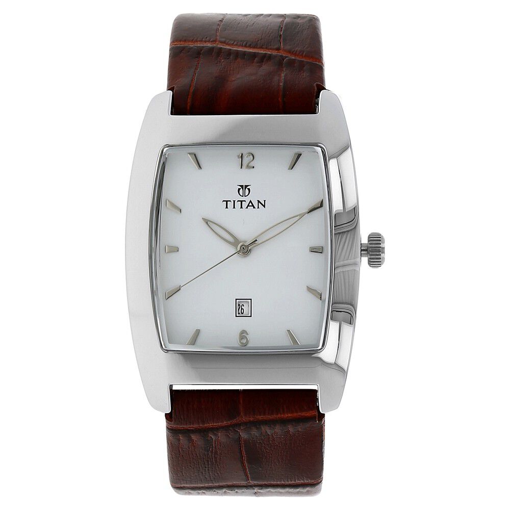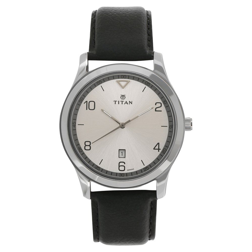Titan White Dial Analog with Date Leather Strap watch forMen-NK1697SL01