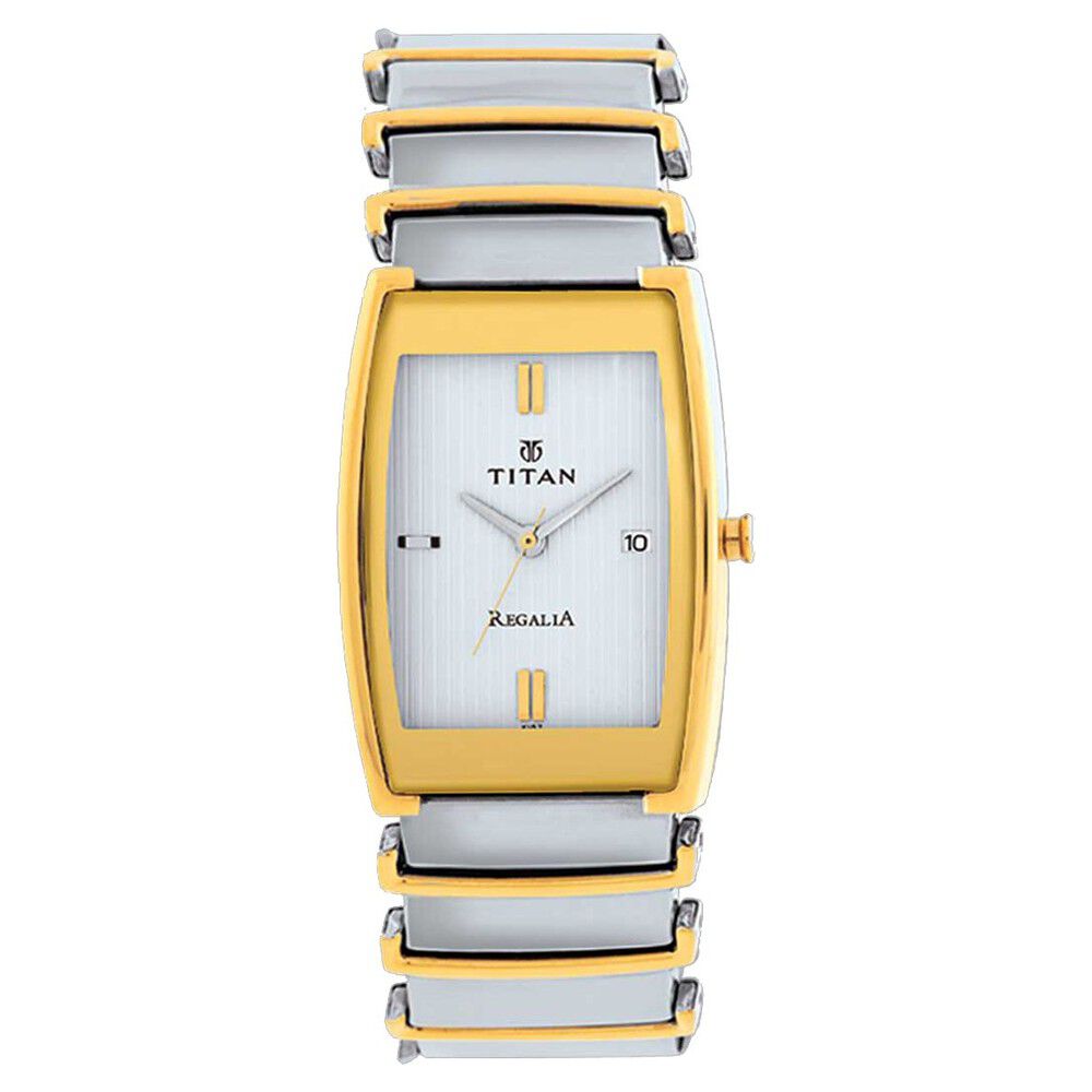 Titan Regal Crest White Dial Analog with Date Stainless Steel Strap Watch for Men-NK1692YM01