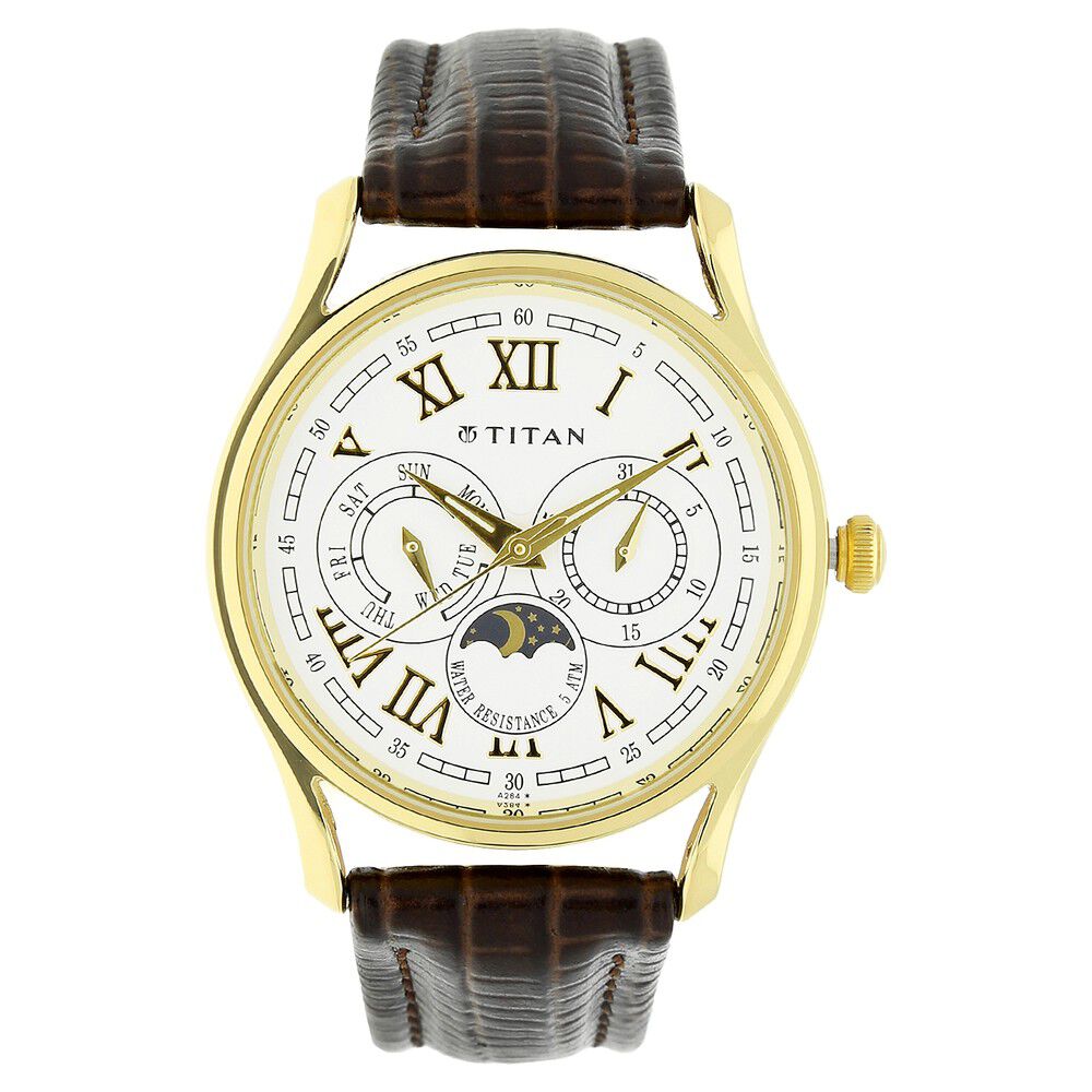 Titan Karishma White Dial Analog with Date Leather Strap Watch for Men-NK1738YL01