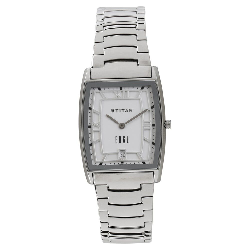 Titan Edge White Dial Analog with Date Stainless Steel Strap watch for Men-NK1684SM01