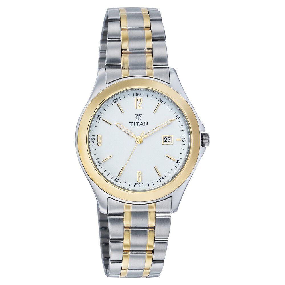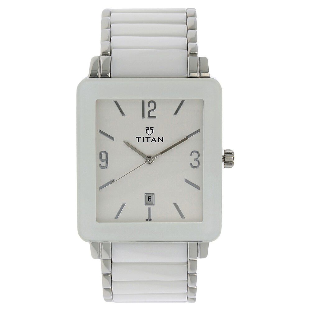 Titan White Dial Analog with DateStainless Steel Strap watch for Men-NE389YM18