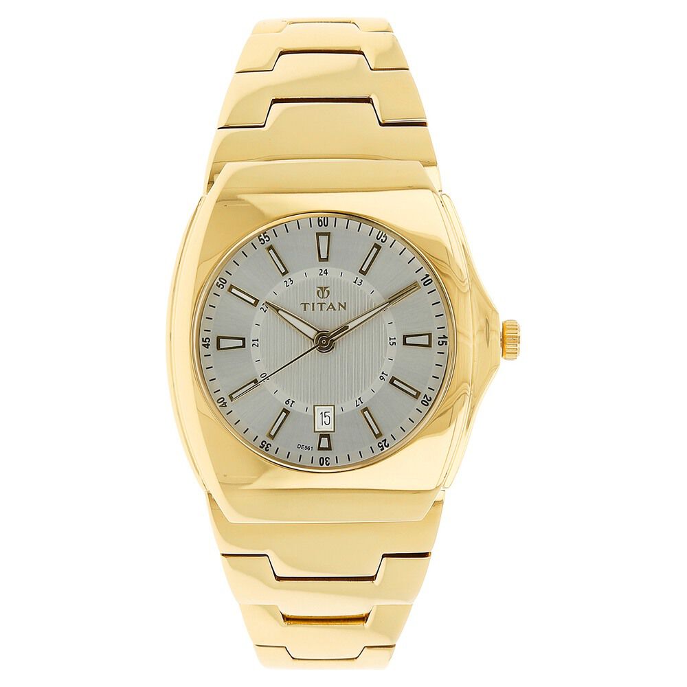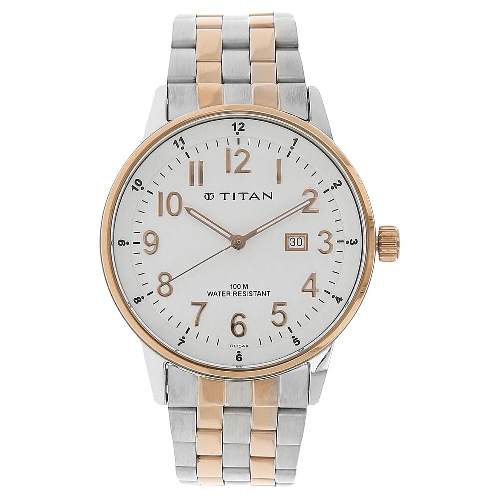 Titan Analog with Date White Dial Quartz Stainless Steel Strap watch for Men-NP9154YM01
