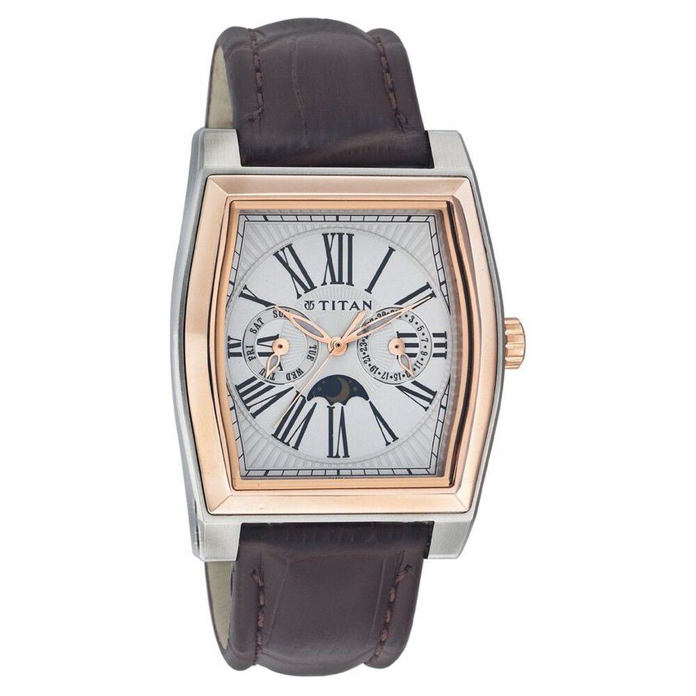 Titan Quartz Multifunction with Moon Phase Silver Dial Watch for Men-NC1555BM01