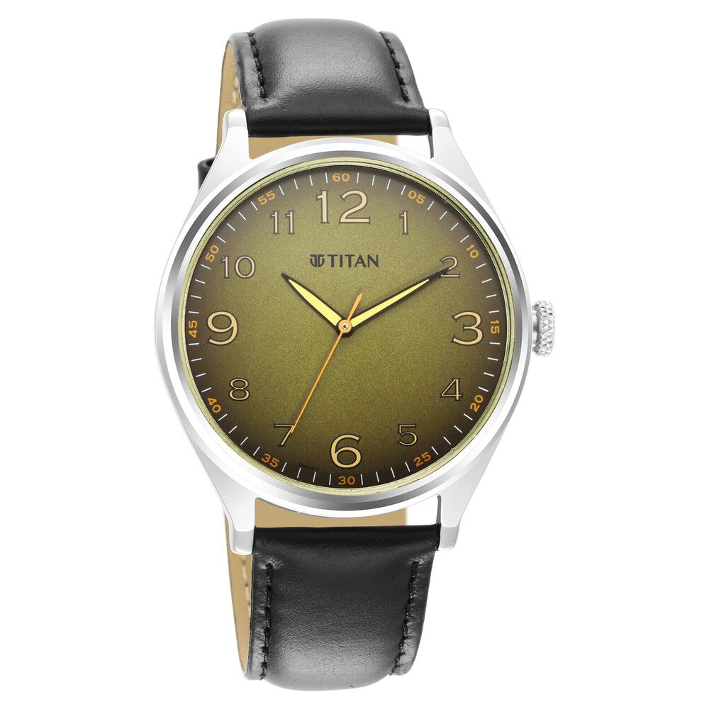 Titan Trendsetters Green Dial Analog Leather Strap Watch for Men-1802SL15