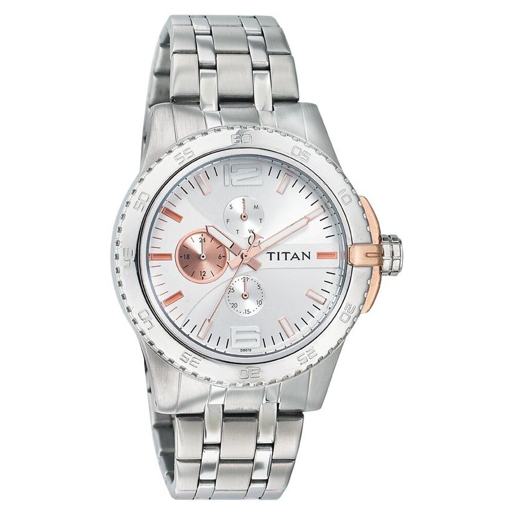 Titan Quartz Multifunction Silver Dial Watch for Men-NB9403WL01