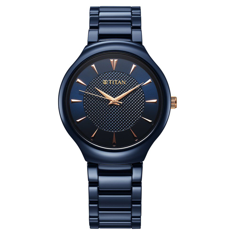 Titan Regalia Ceramics Quartz Analog Blue Dial Blue Color Ceramic Strap Watch For Men 90014KC04