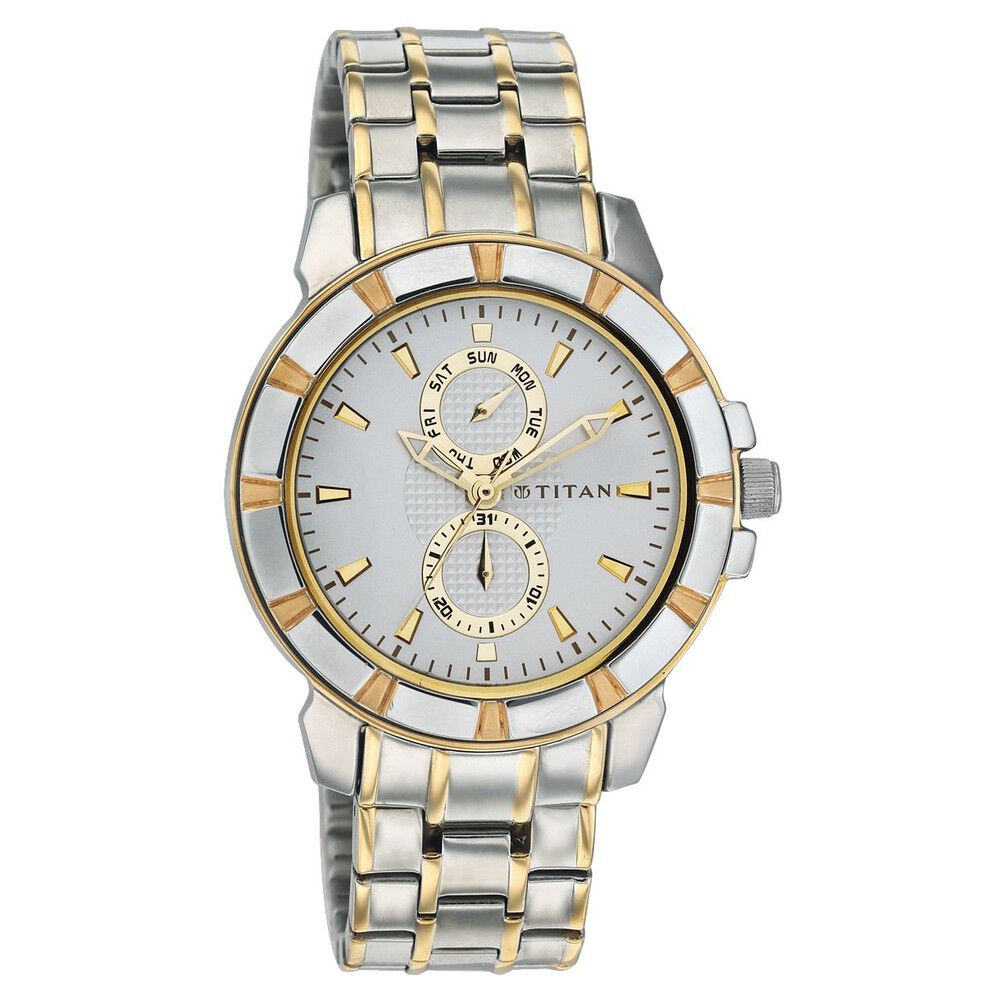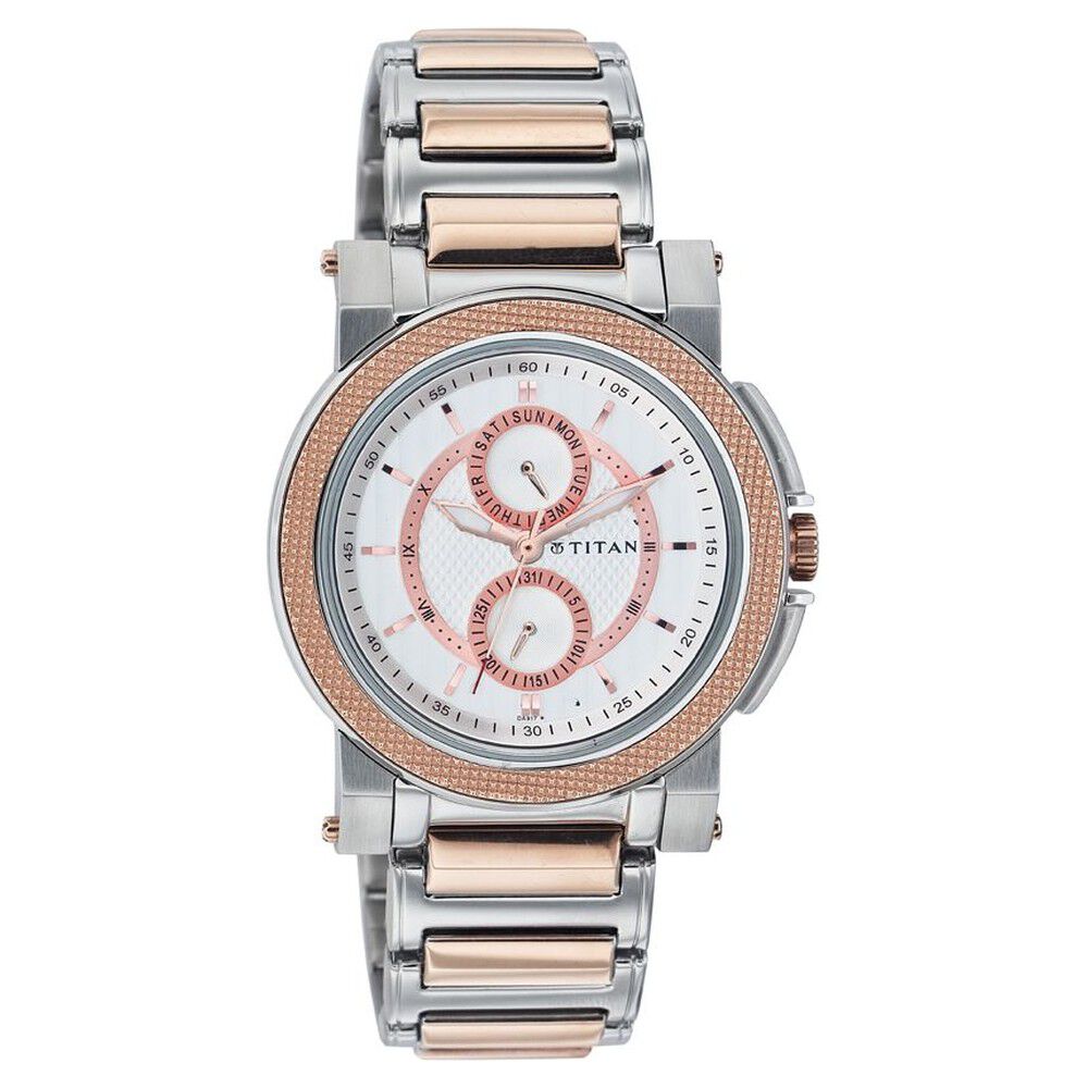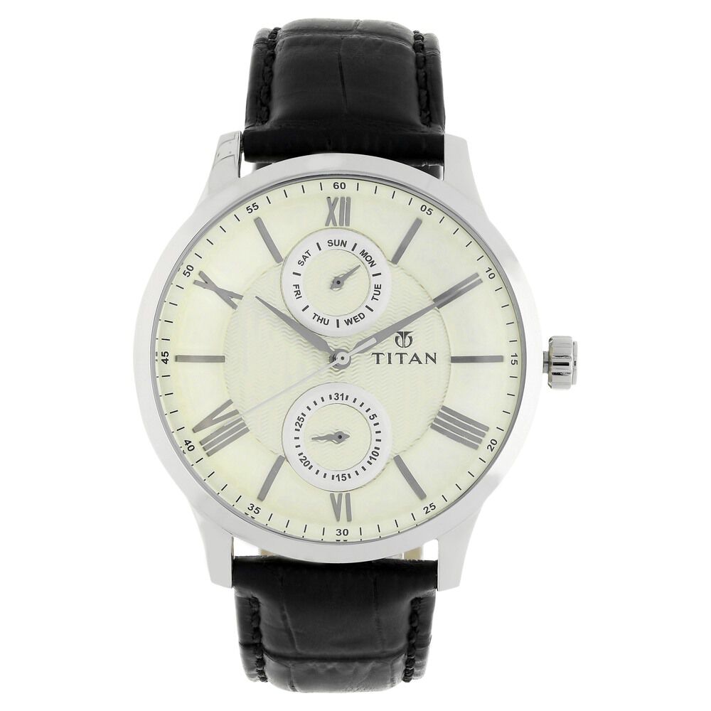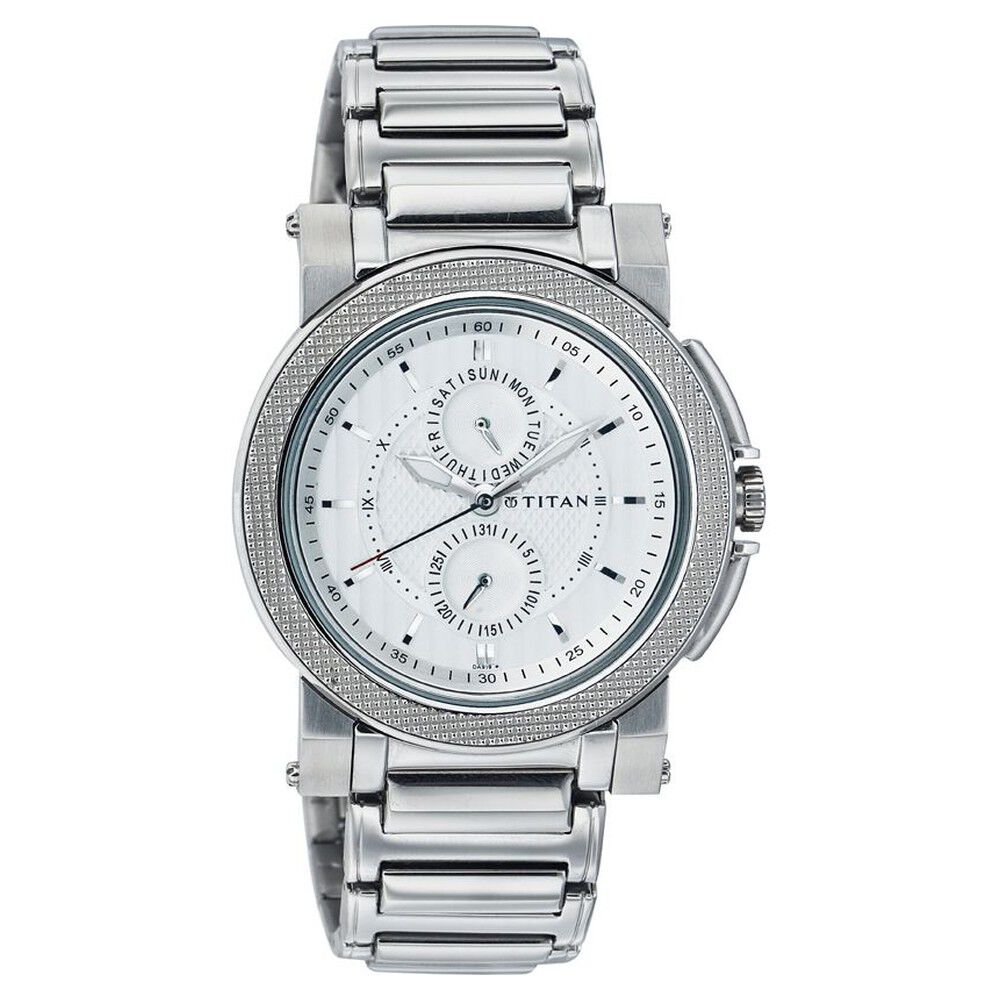 Titan Quartz Multifunction Silver Dial Watch for Men-NB1567BM01