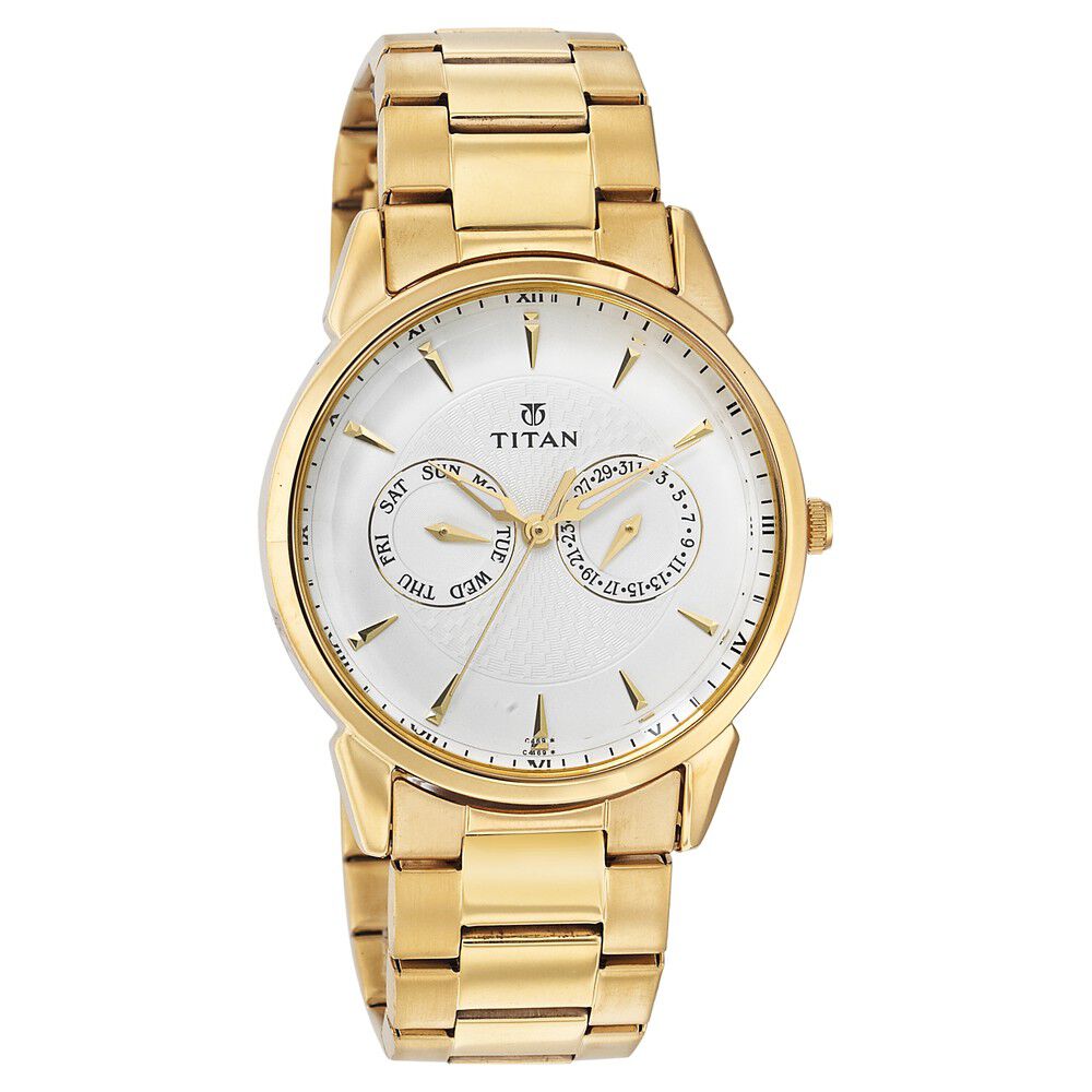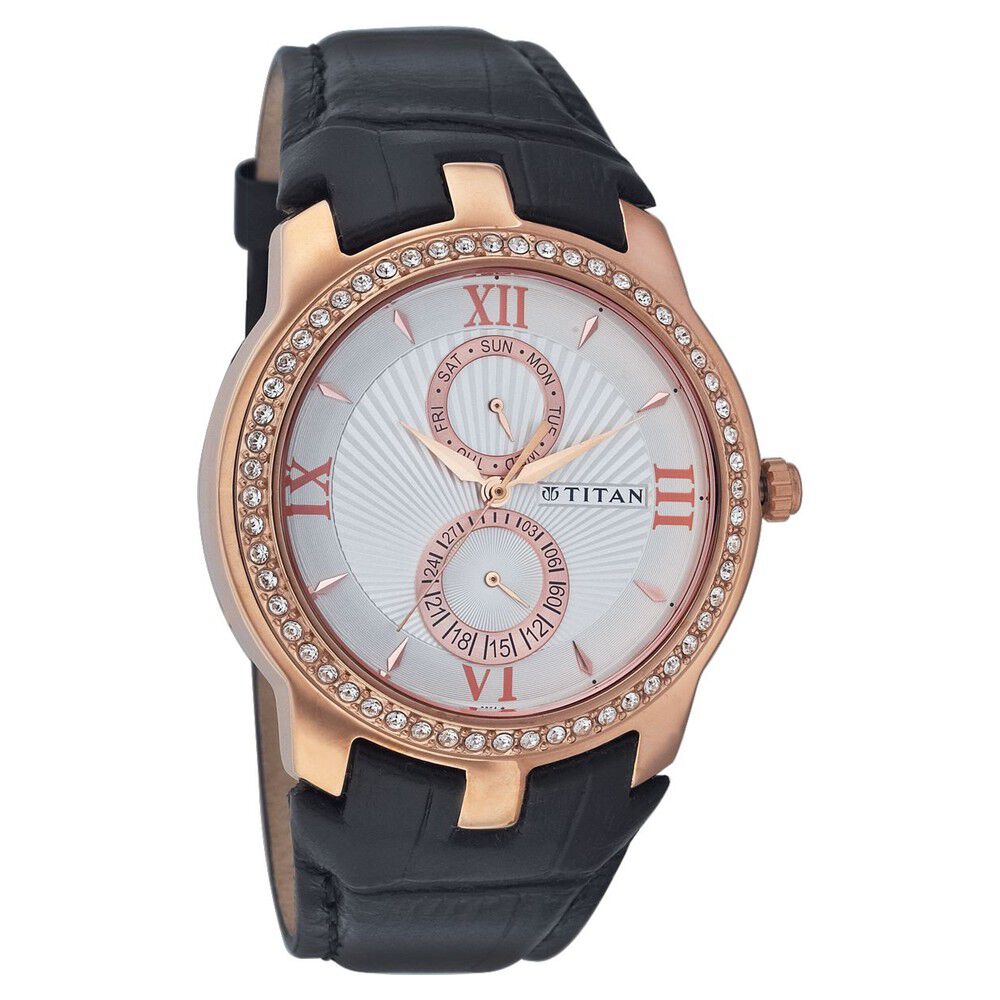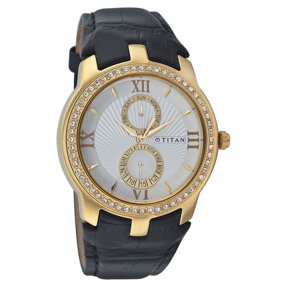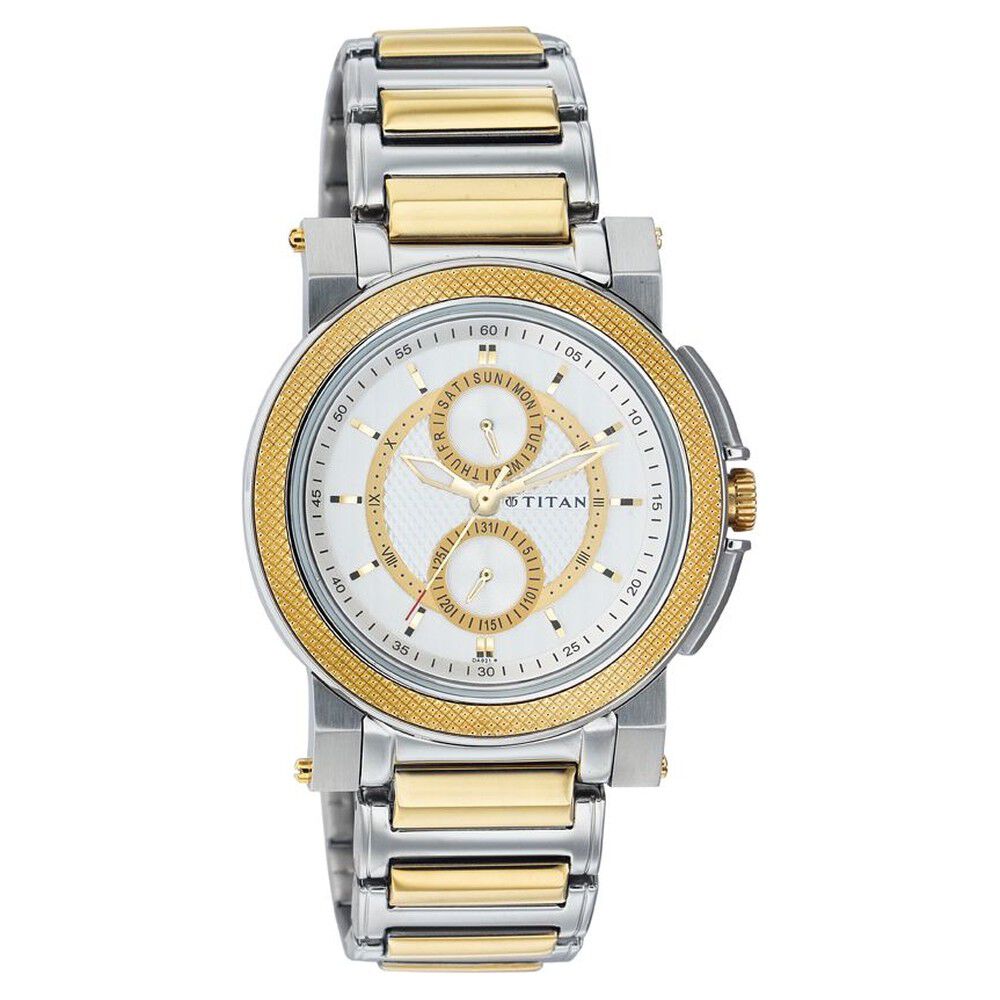 Titan Quartz Multifunction Silver Dial Watch for Men-NB1567BM01