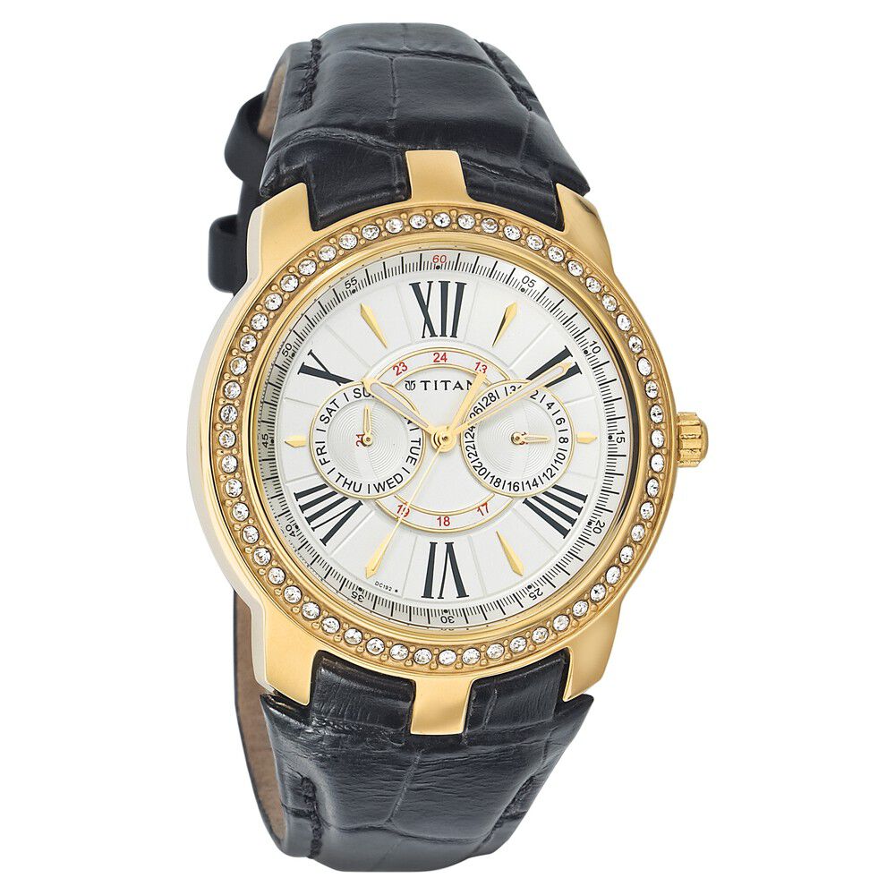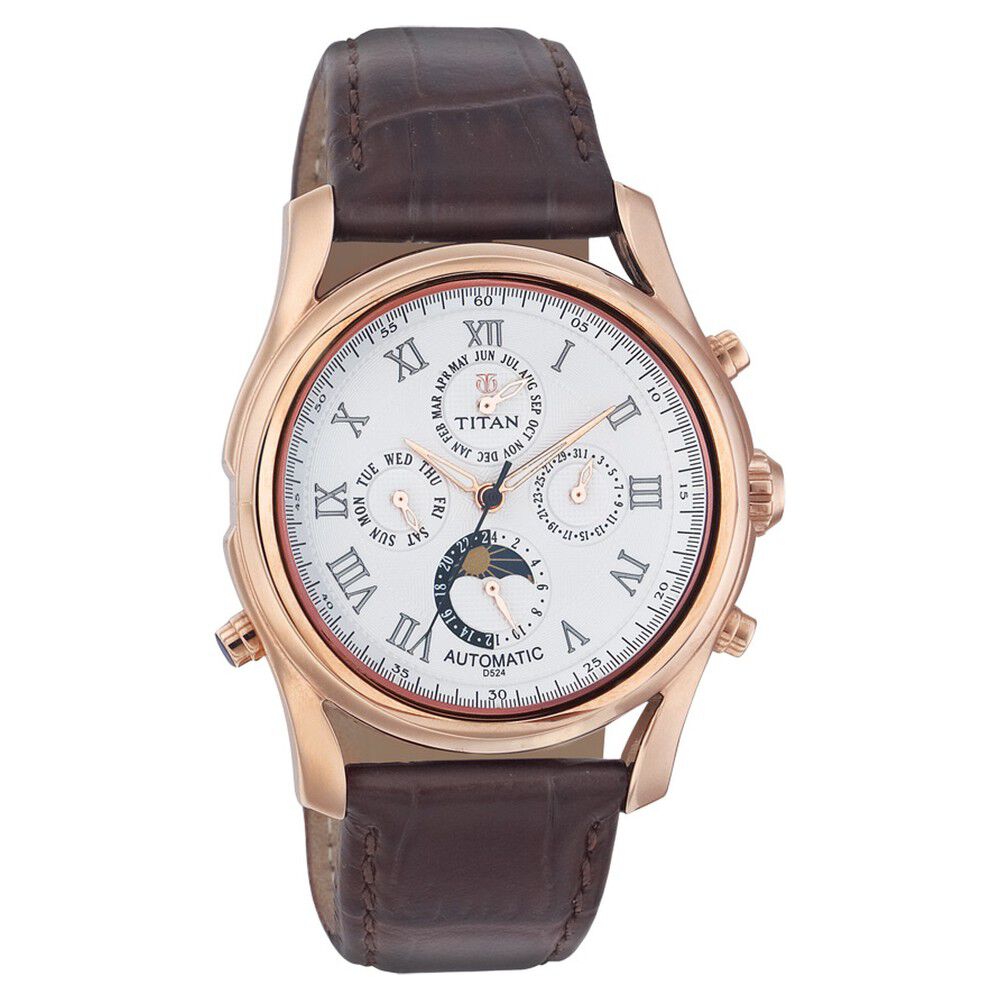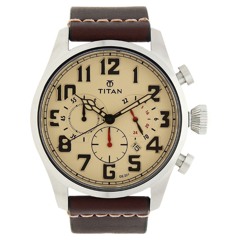 Titan On Trend Silver Dial Quartz Multifunction Leather Strap watch for Men-NM90100SL01