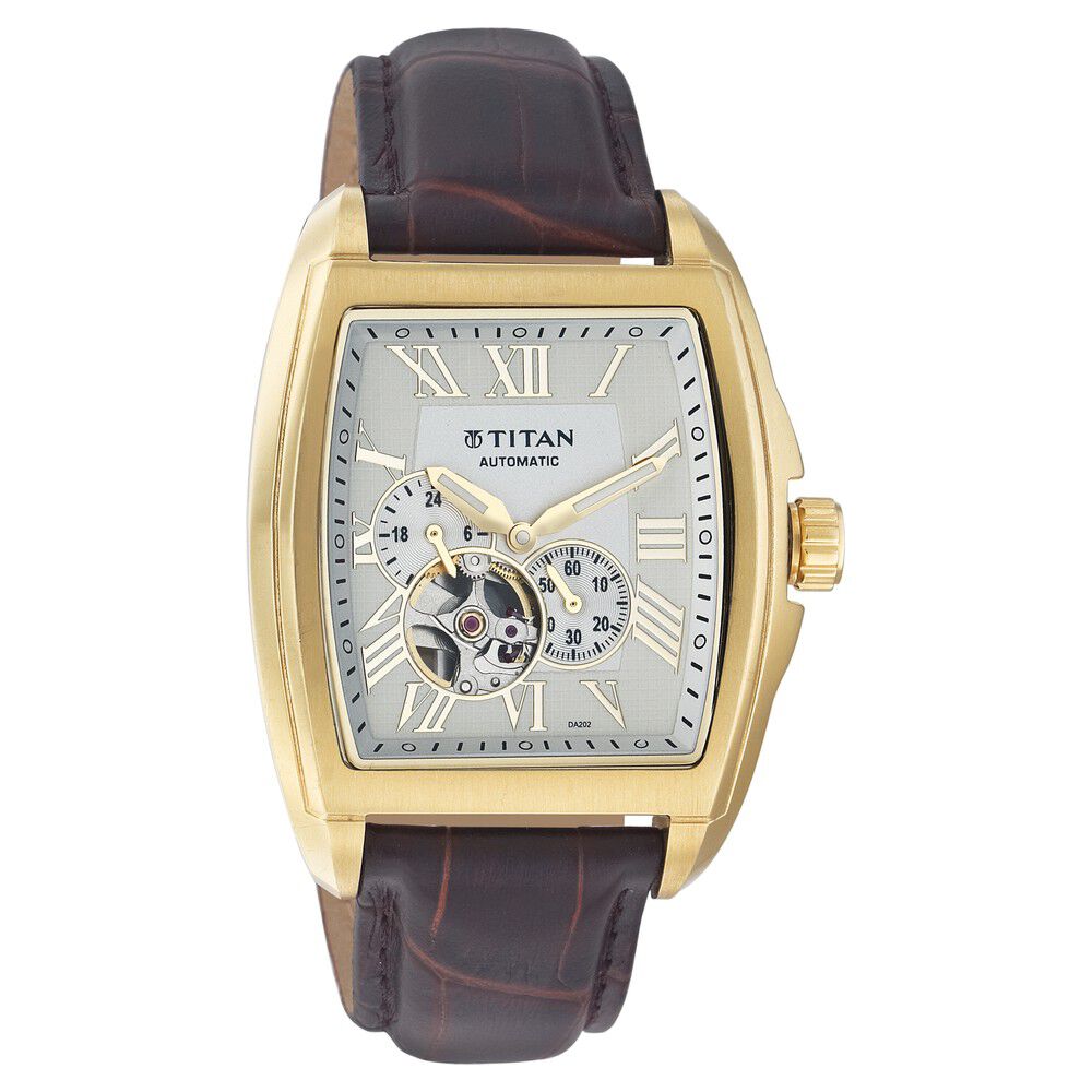 Titan White Dial Quartz Leather Strap Watch for Men-NB1567SM01