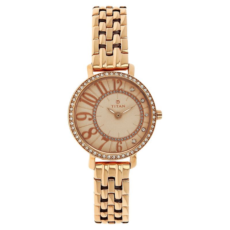Titan Glitz Rose Gold Dial Stainless Steel Strap Watch For Women