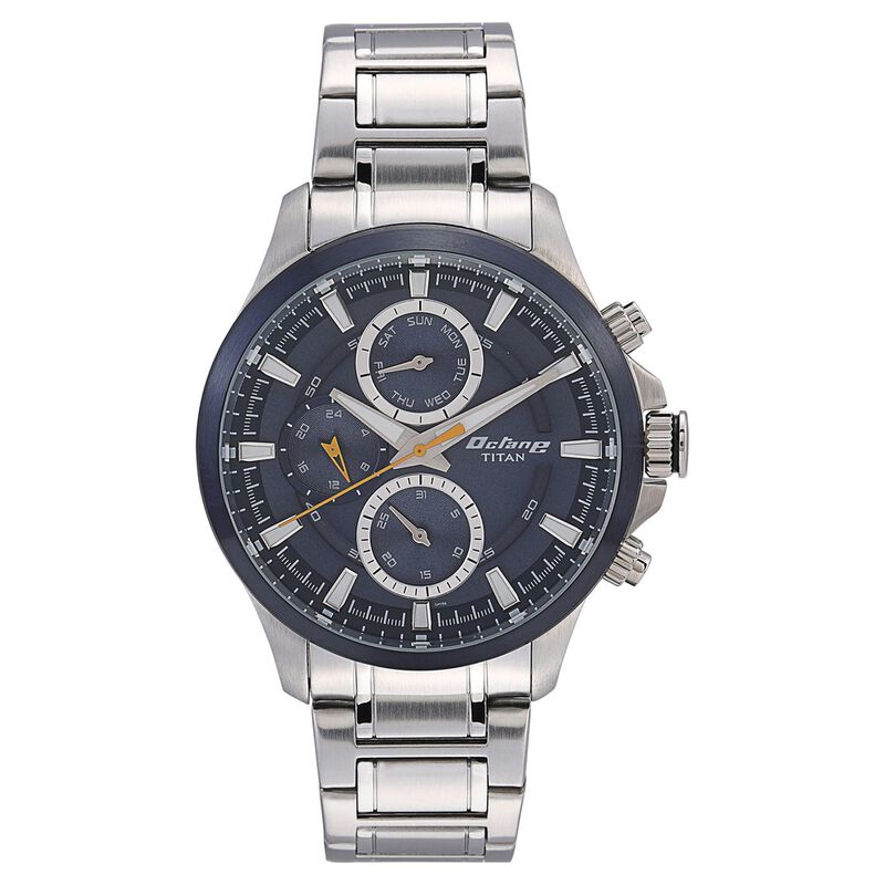 Titan Octane Blue Dial Quartz Multifunction Stainless Steel Strap Watch For Men