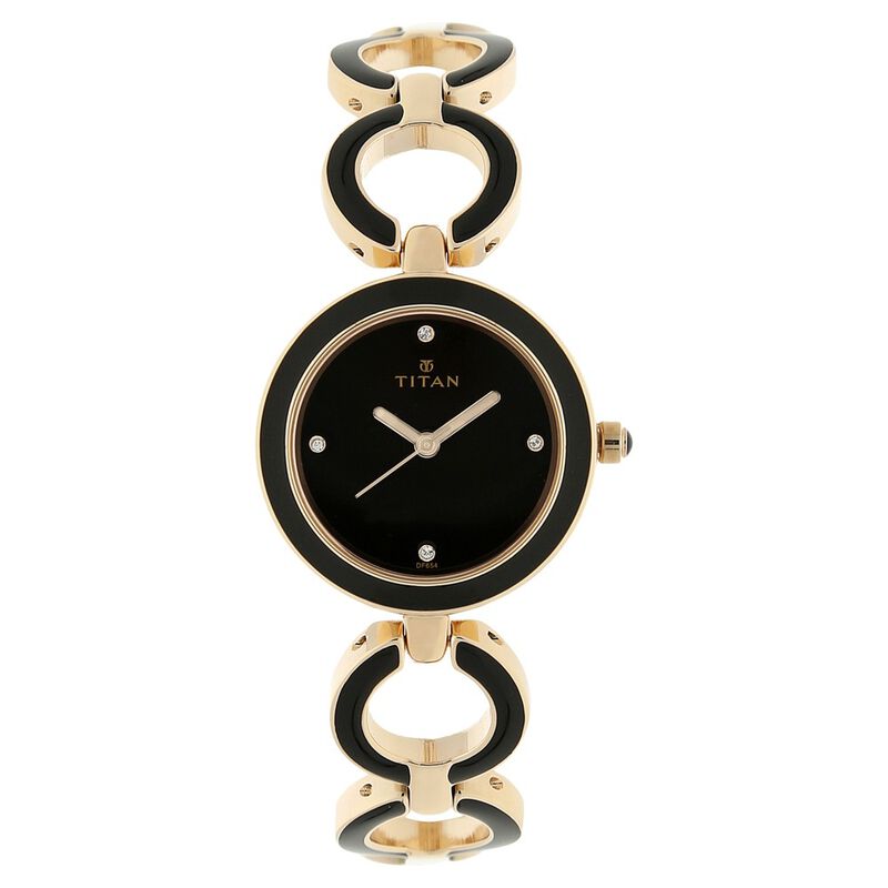 Titan Quartz Analog Black Dial Metal Strap Watch For Women