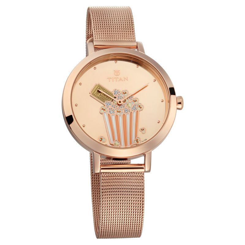 Titan PoP Rose Gold Dial Analog Stainless Steel Strap Watch For Women