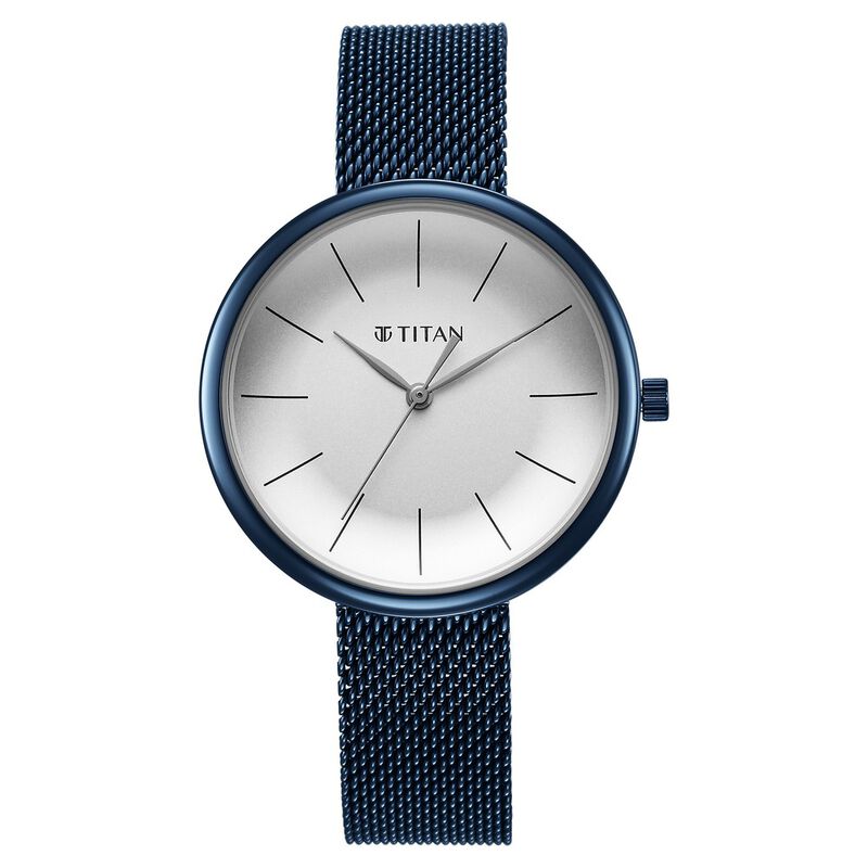 Titan Slimline Blue Dial Analog Stainless Steel Strap Watch For Women