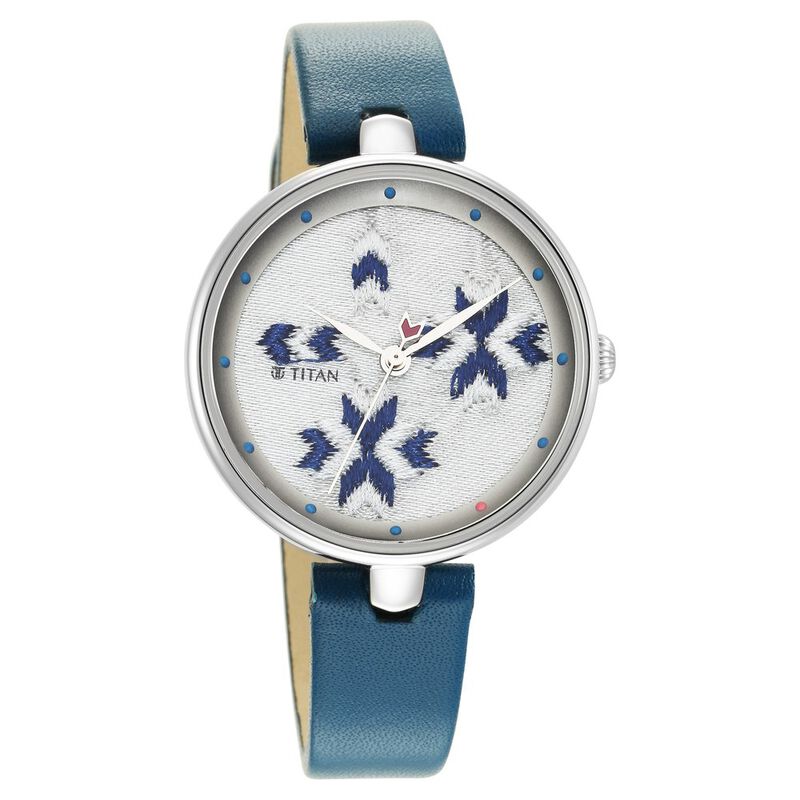 Titan Memento Blue Dial Analog Leather Strap Watch For Women
