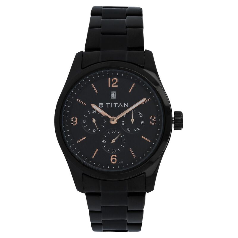Titan Quartz Analog Black Dial Metal Strap Watch For Men