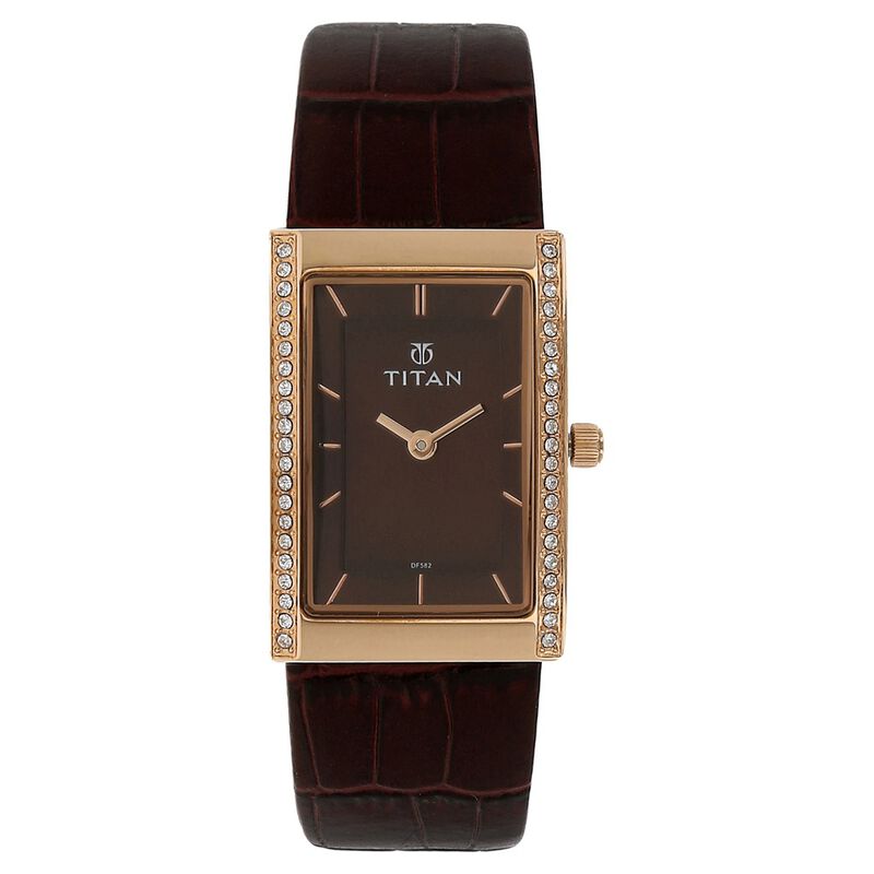Titan Quartz Analog Brown Dial Leather Strap Watch For Women