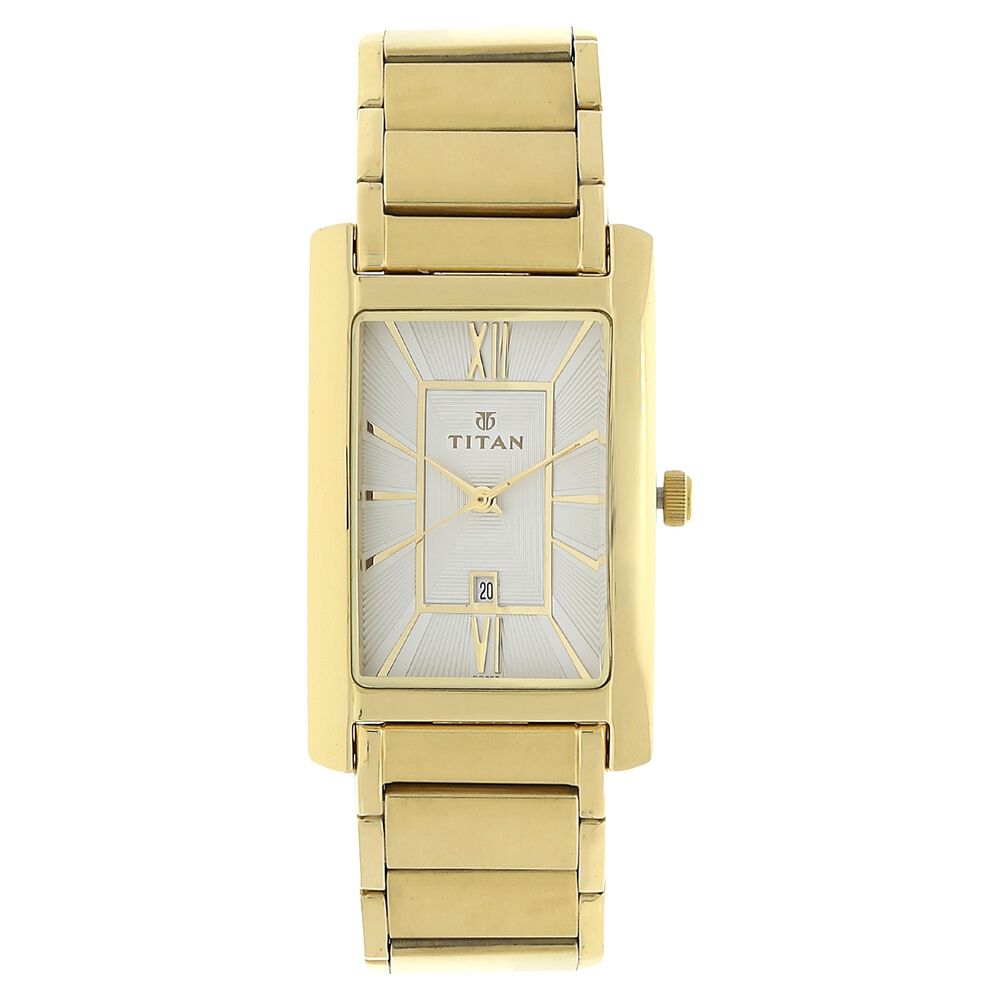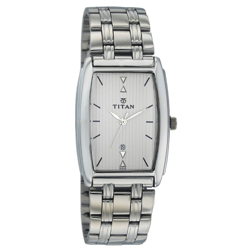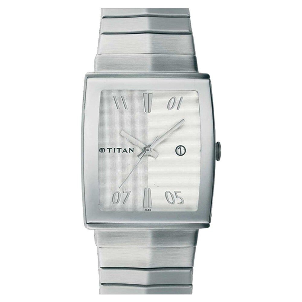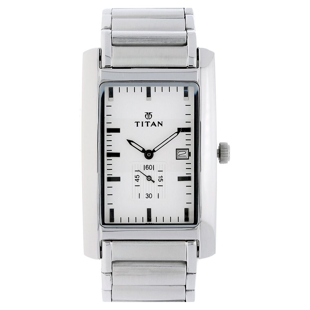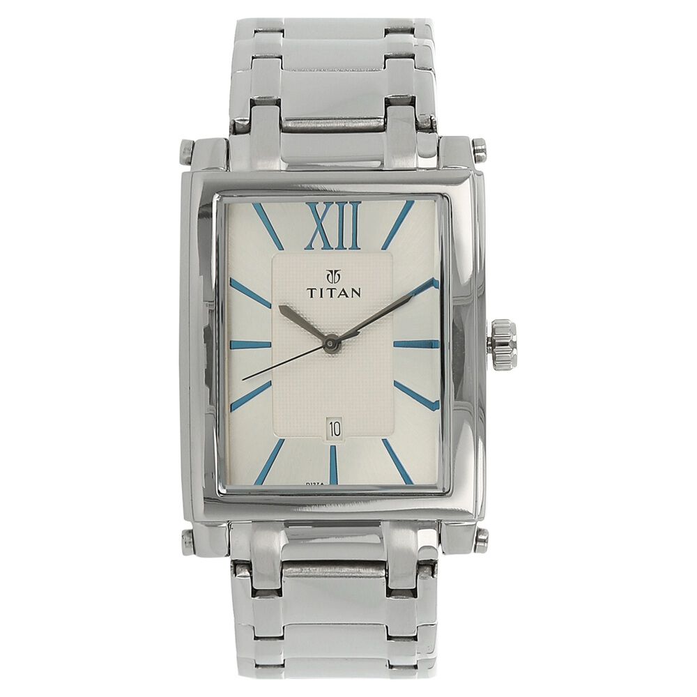 Titan Rectangle Silver Dial Analog with Date Stainless Steel Strap watch for Men-NK9280YM01
