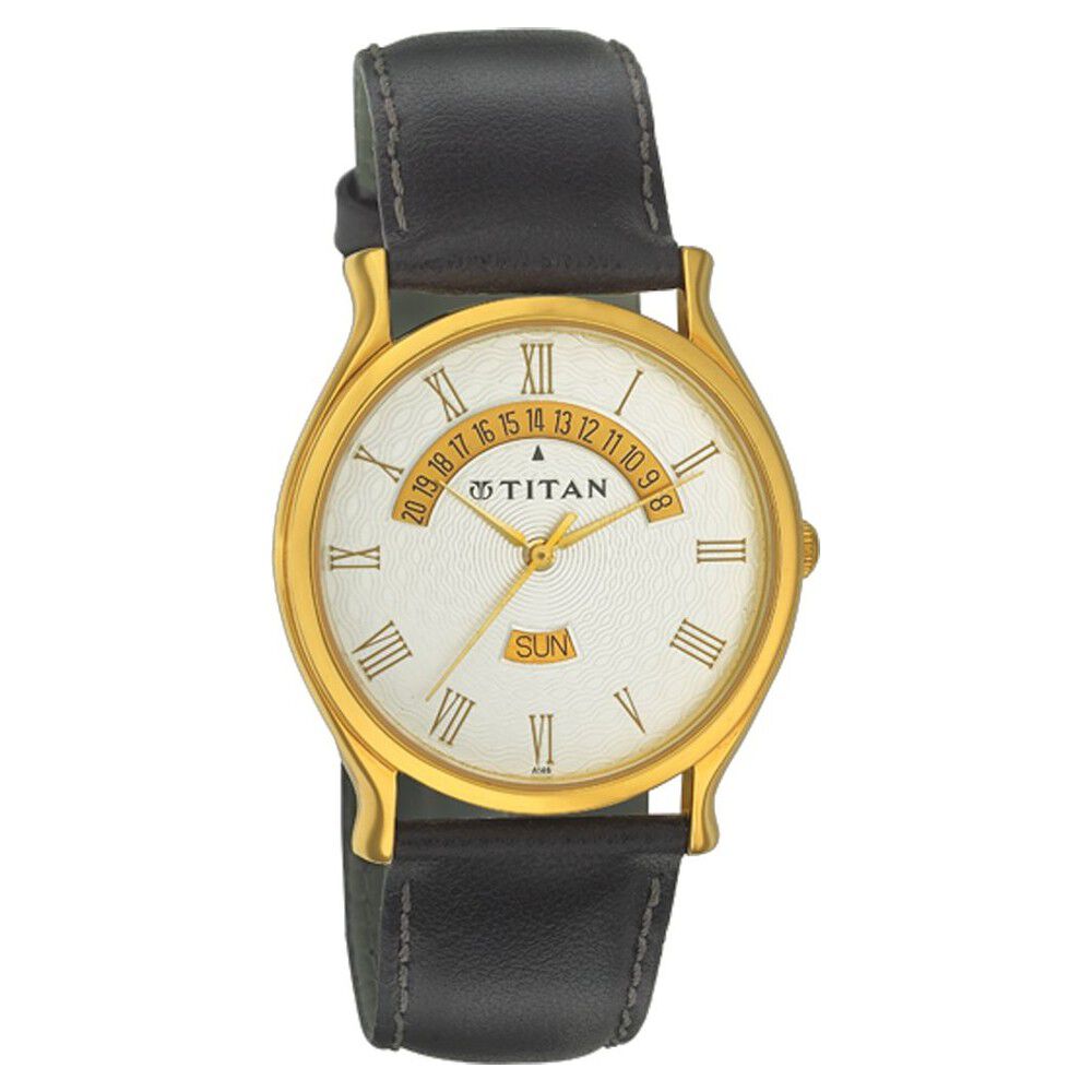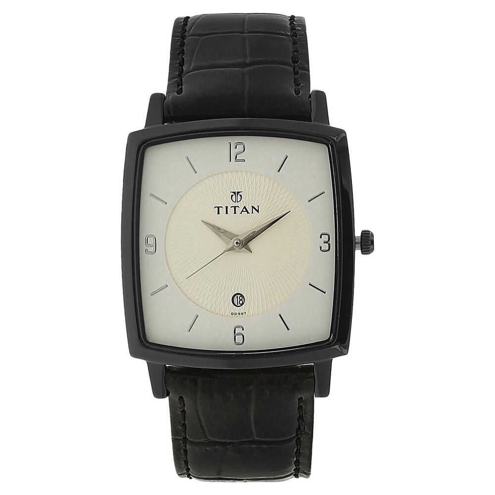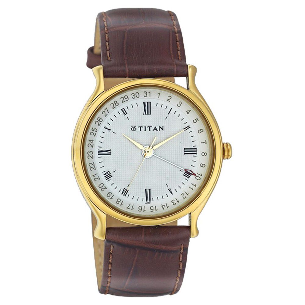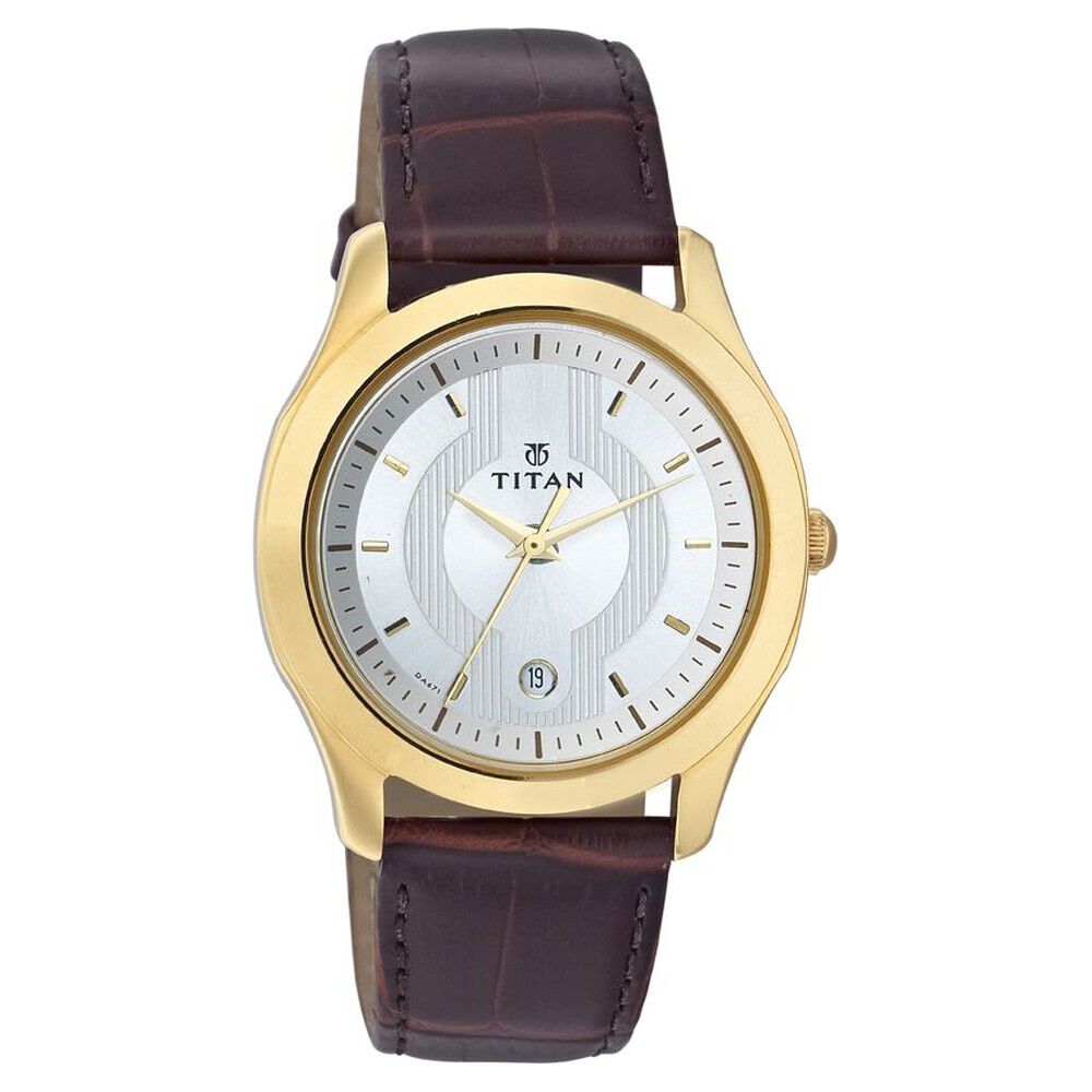Titan Classic Silver Dial Analog with Date Leather Strap watch for Men-NJ9159NL02