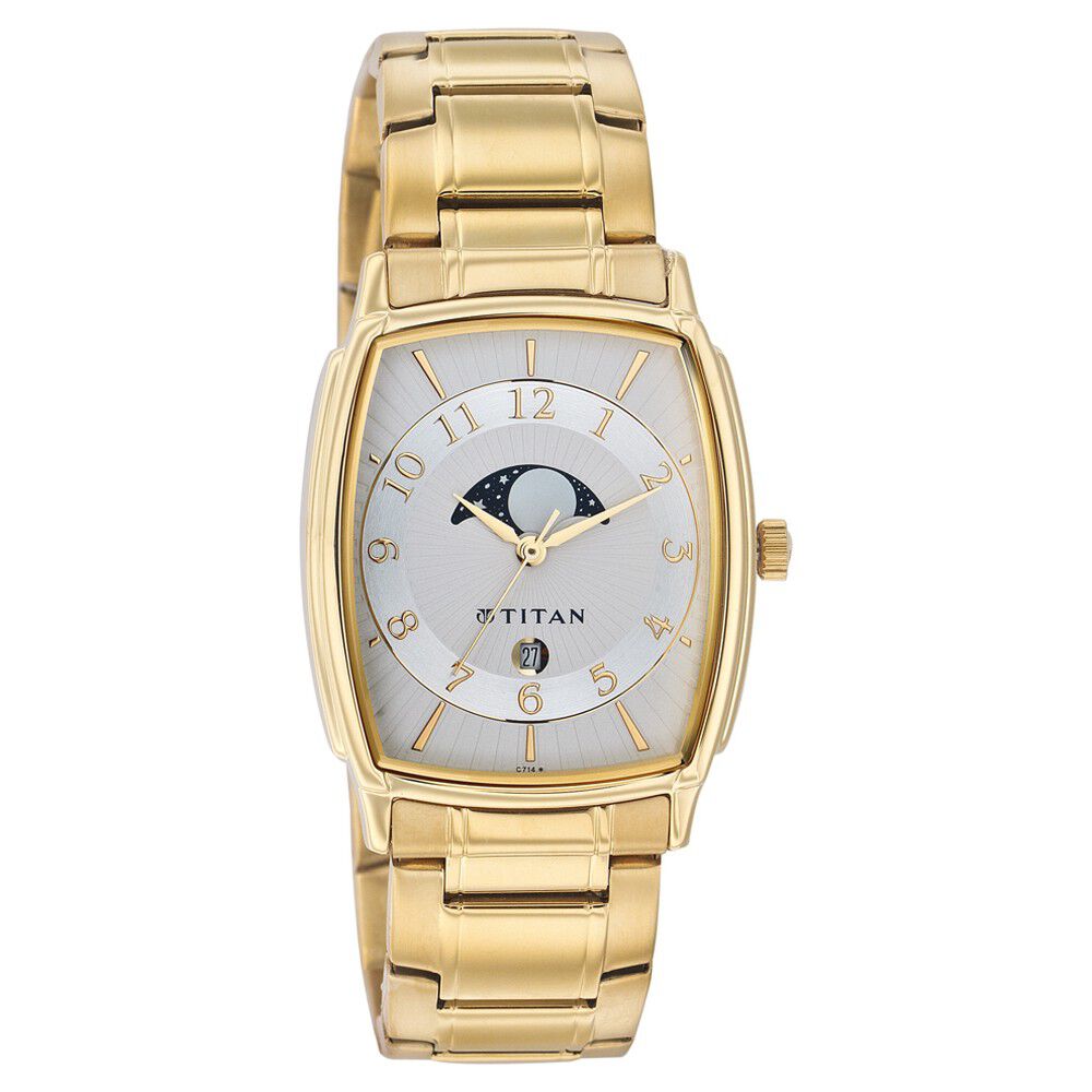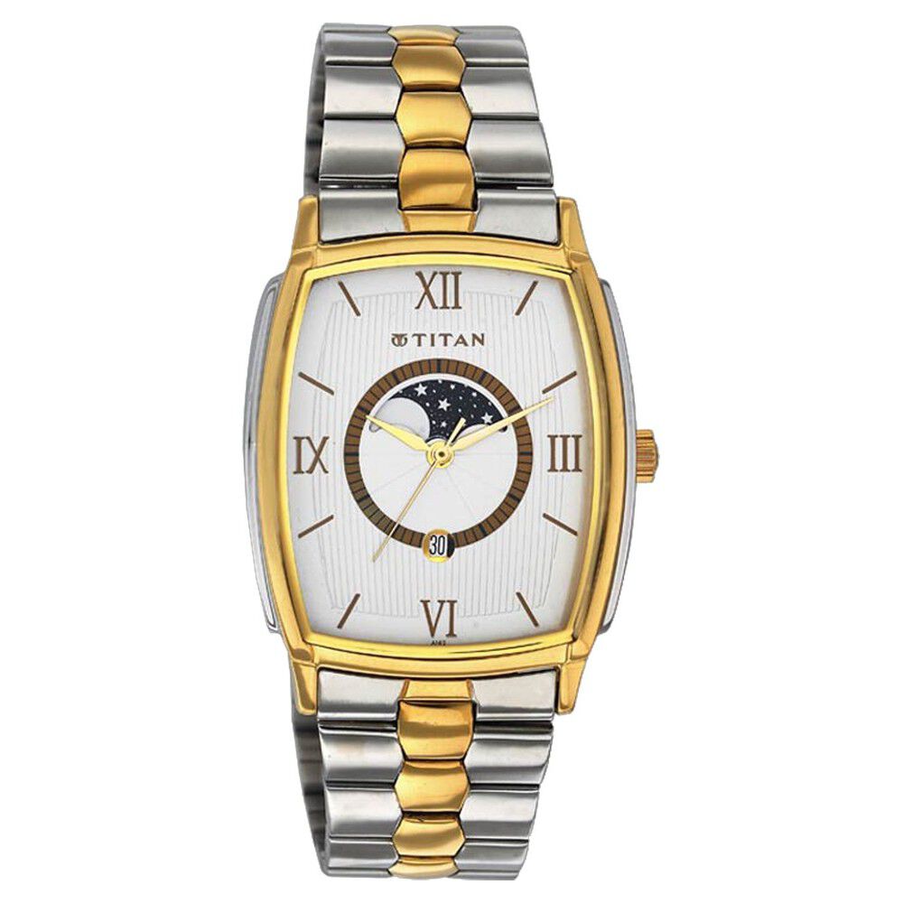 Titan Moonphase Silver Dial Quartz Metal Strap watch for Men-NC1486BM03