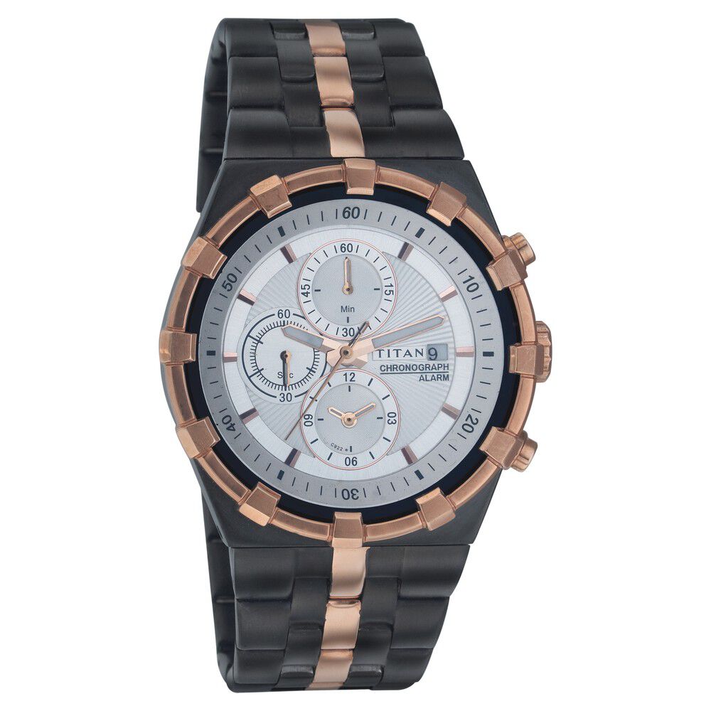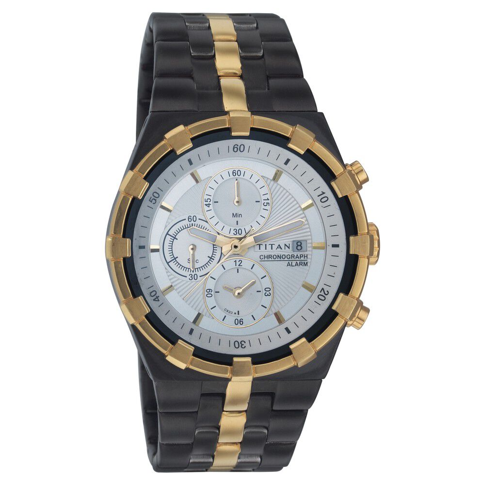 Titan Analog with Date Silver Dial Stainless Steel Strap watch for Men-NK9317BM01