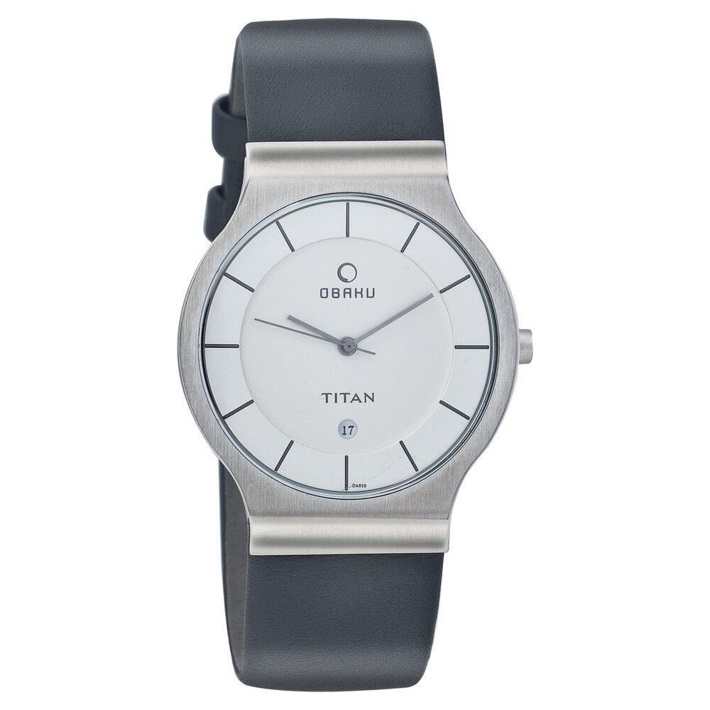 Titan Analog with Date Silver Dial, Leather Strap watch for Men-NE9386SL01