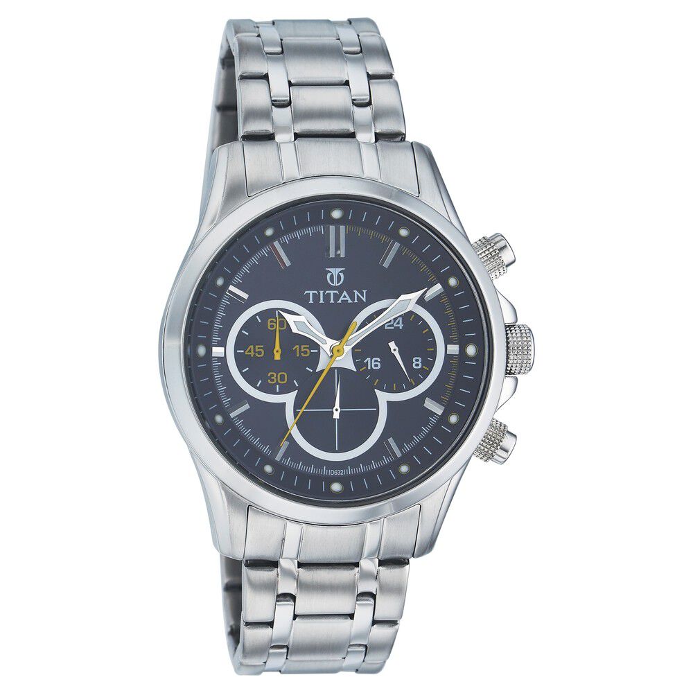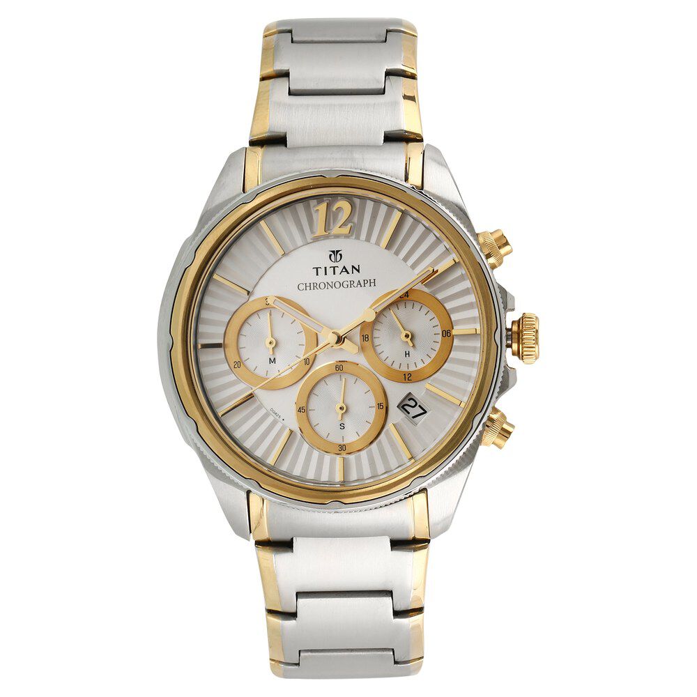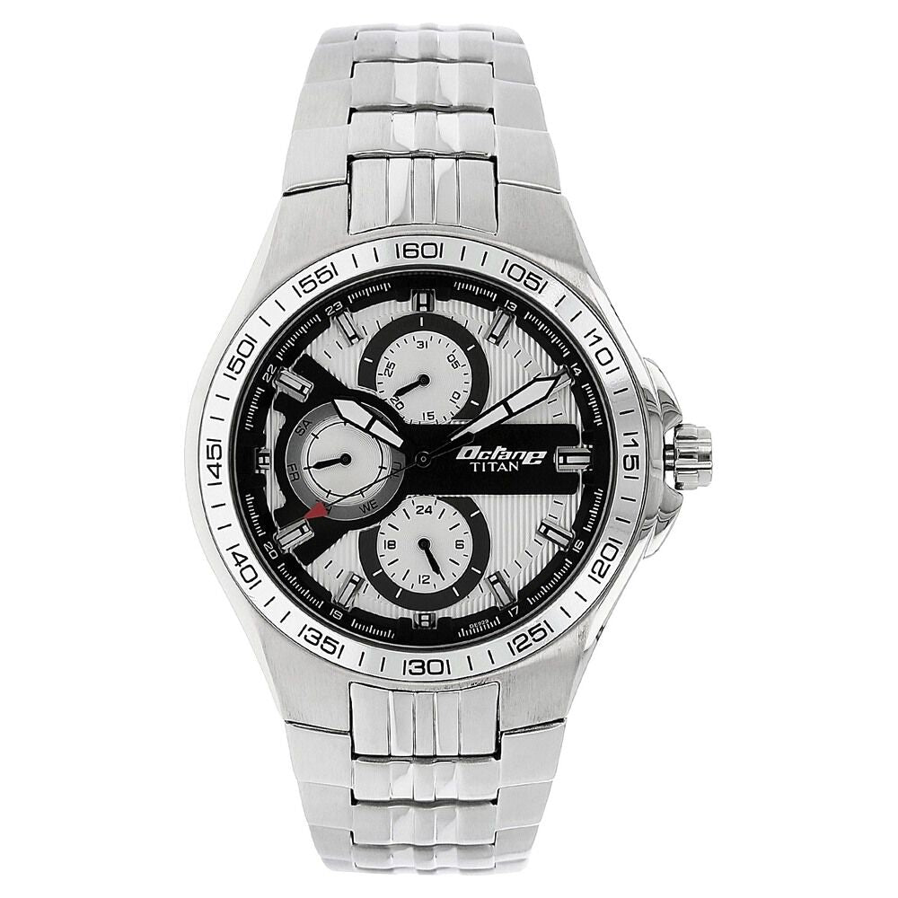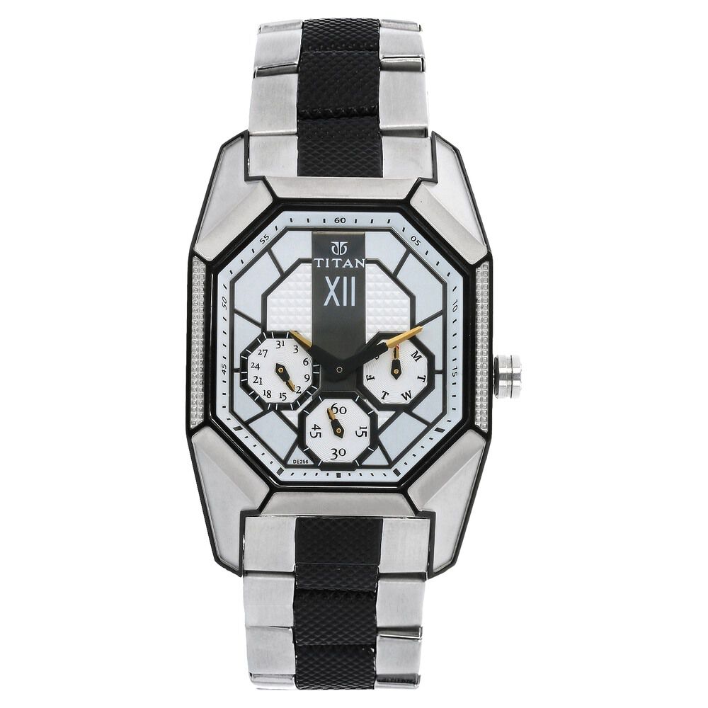 Titan Quartz Multifunction Silver Dial Stainless Steel Strap Watch for Men-NK9324SM01M