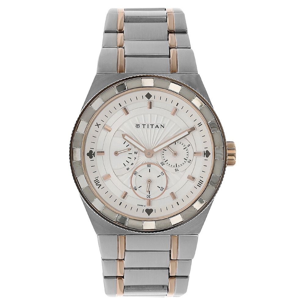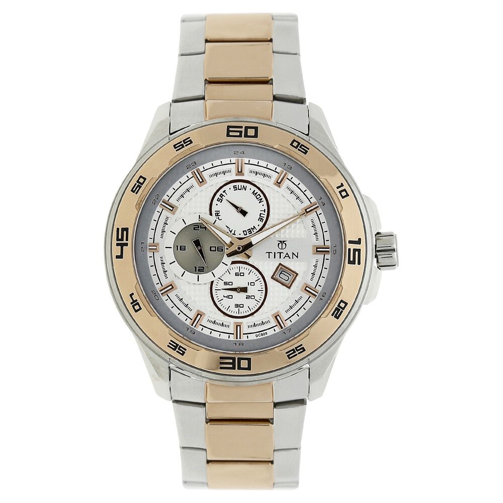 Titan Quartz Multifunction White Dial Stainless Steel Strap Watch for Men-NK9472KM02