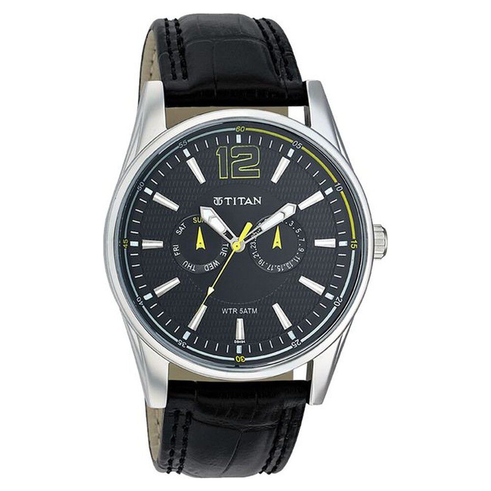 Titan Quartz Multifunction Silver Dial Quartz Leather Strap watch for Men-NM1632SL01