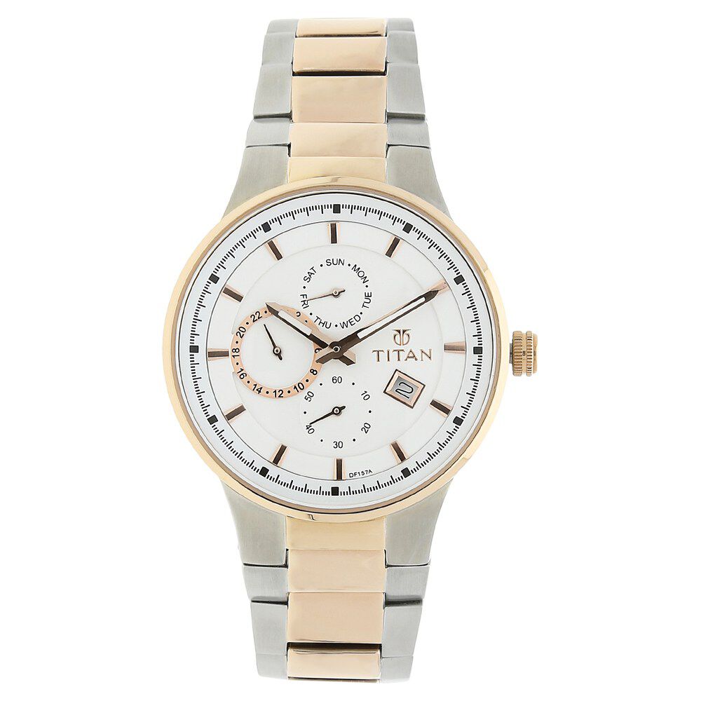 Titan Quartz Multifunction White Dial Metal Strap Watch for Men-NR90008KM01