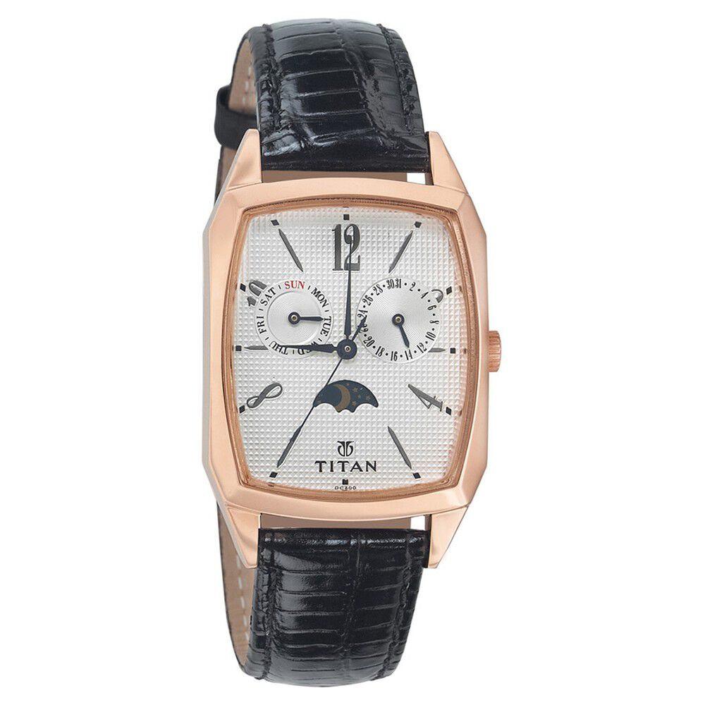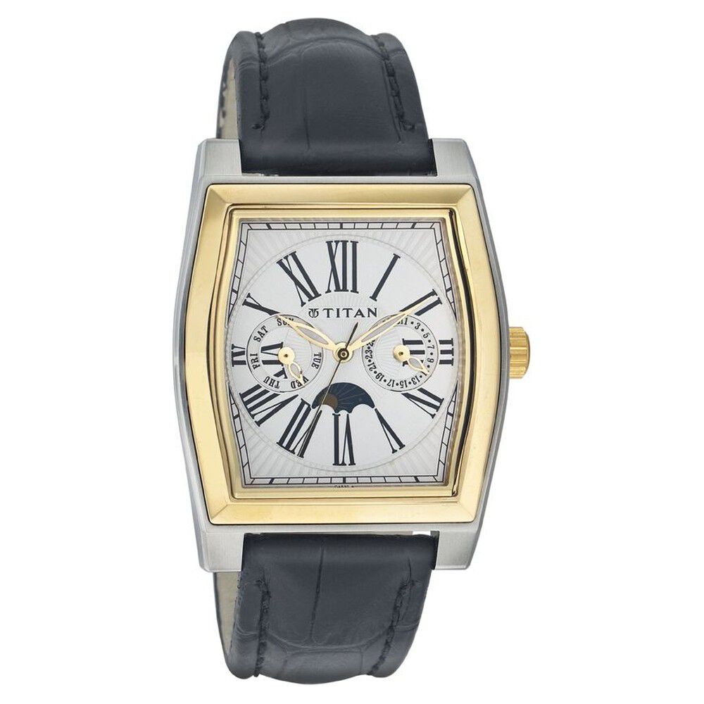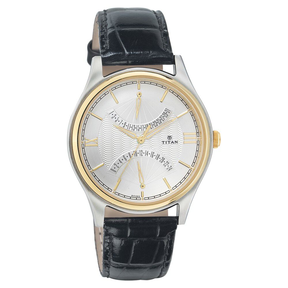 Titan Quartz Multifunction Silver Dial Leather Strap Watch for Men-NF1620YL01