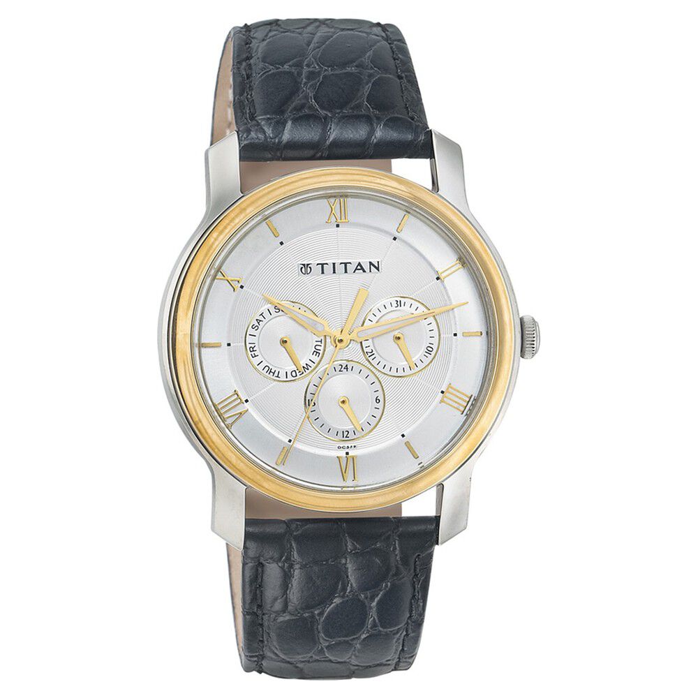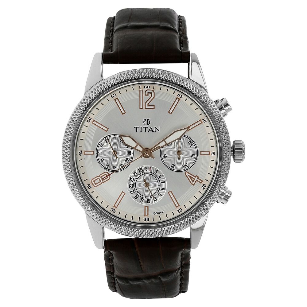 Titan Quartz Multifunction Silver Dial Leather Strap Watch for Men-1617WL01