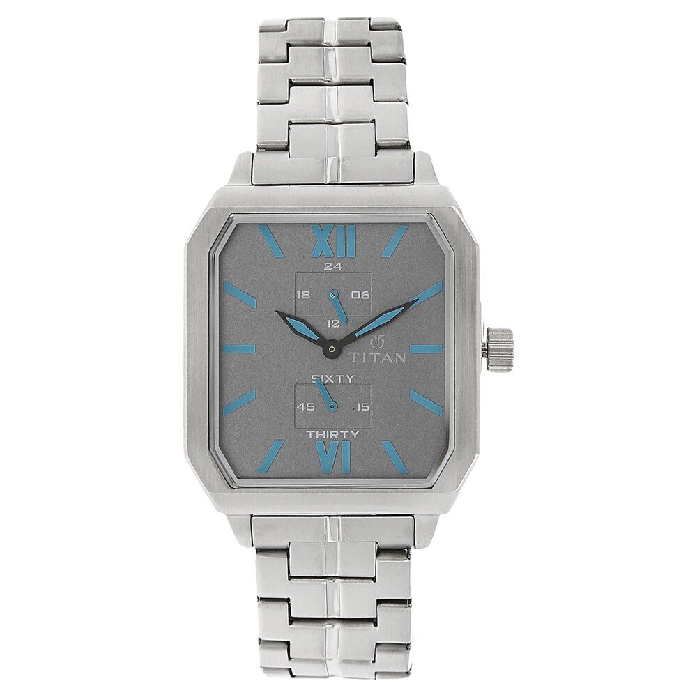 Titan Quartz Multifunction Grey Dial Stainless Steel Strap Watch for Men-1643SM02