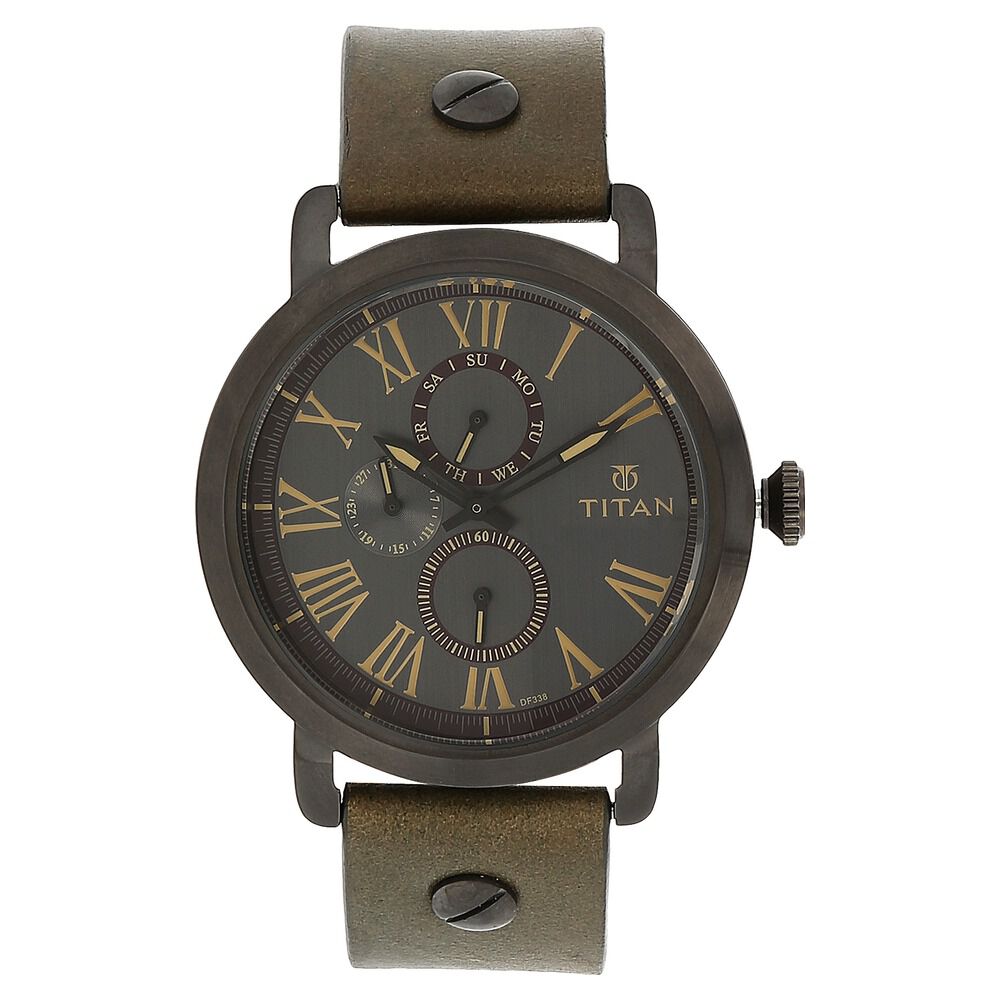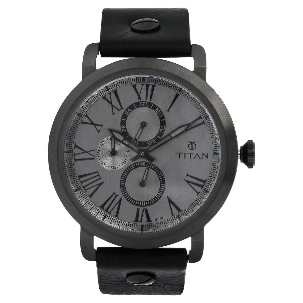 Titan Quartz Multifunction Grey Dial Leather Strap Watch for Men-NJ90049QL01