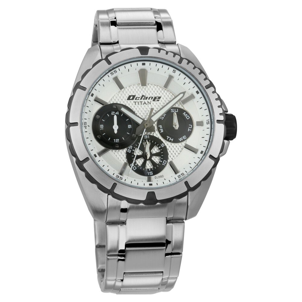 Titan Quartz Multifunction Silver Dial Stainless Steel Strap Watch for Men-NF1658BM01