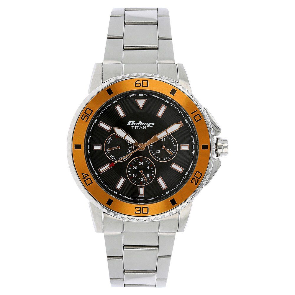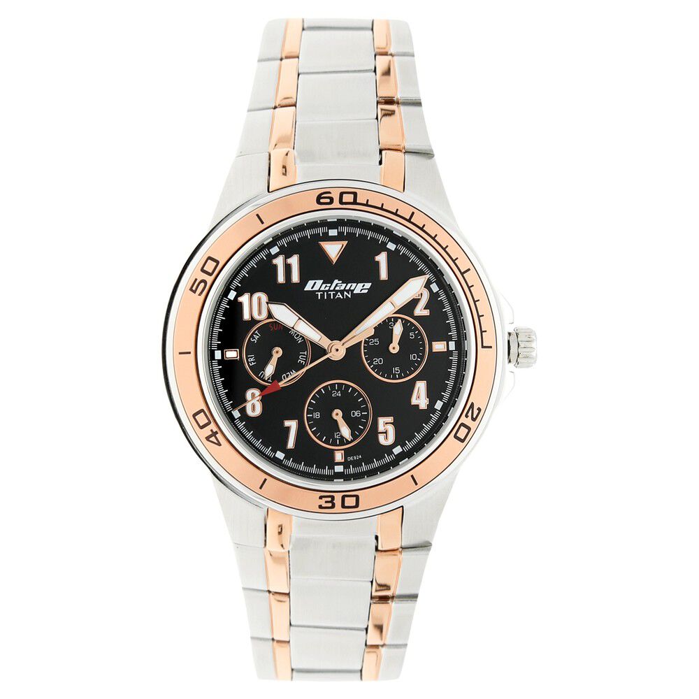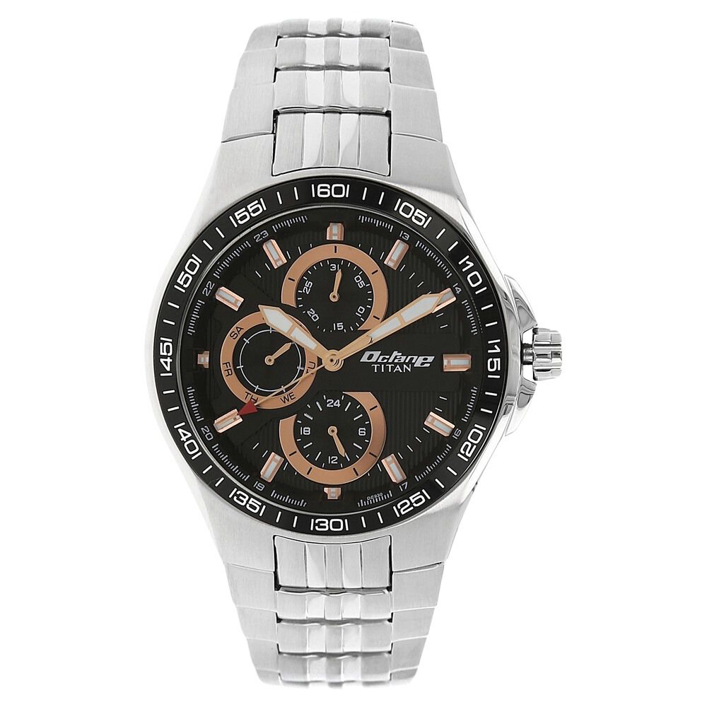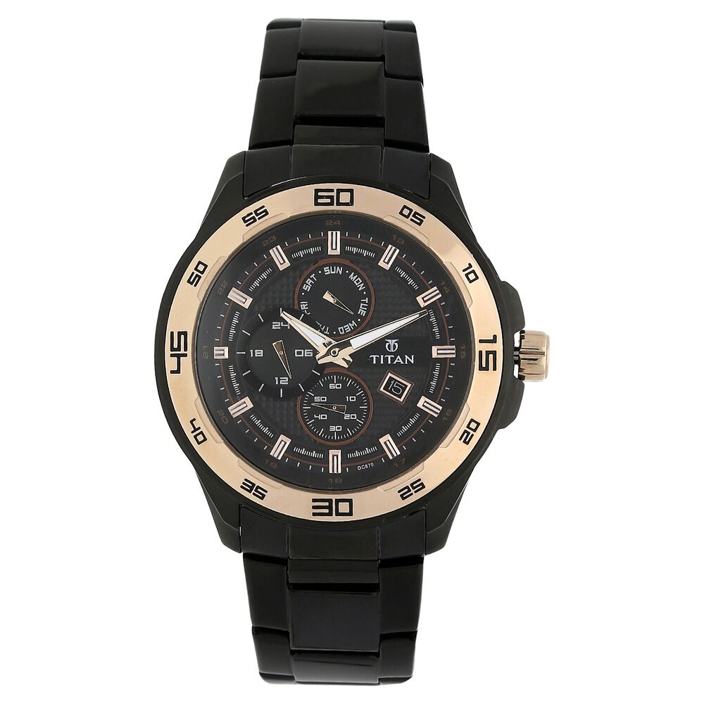 Titan Quartz Multifunction Black Dial Stainless Steel Strap Watch for Men-NM90040KM02