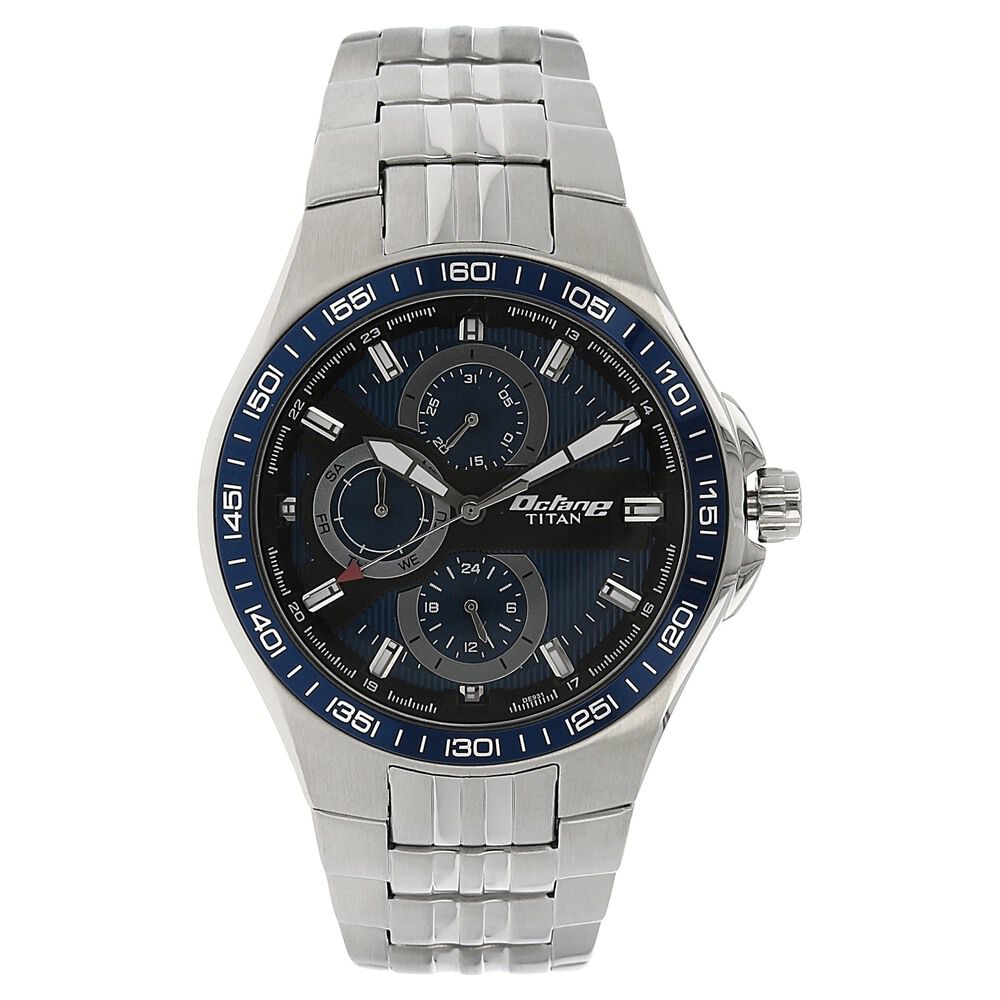 Titan Quartz Multifunction Blue Dial Stainless Steel Strap Watch for Men-1724BM01