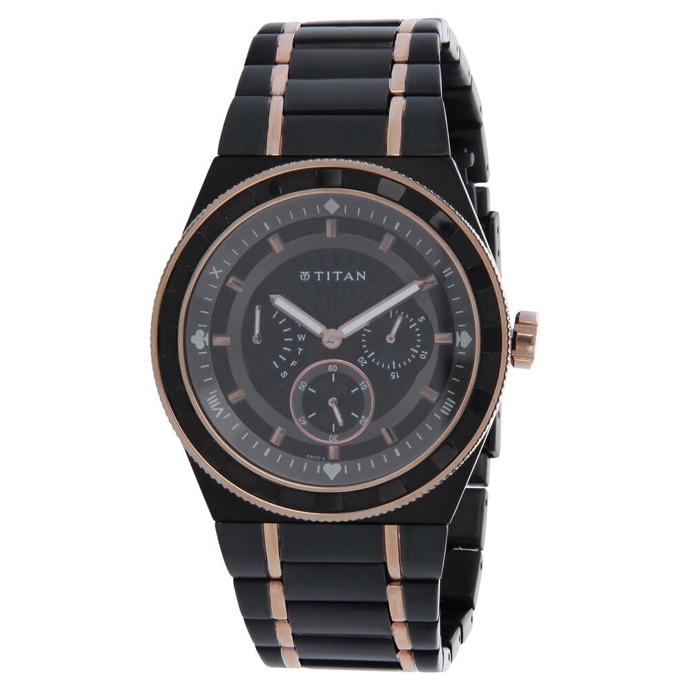 Titan Quartz Multifunction Black Dial Stainless Steel Strap Watch for Men-NS90039KM02