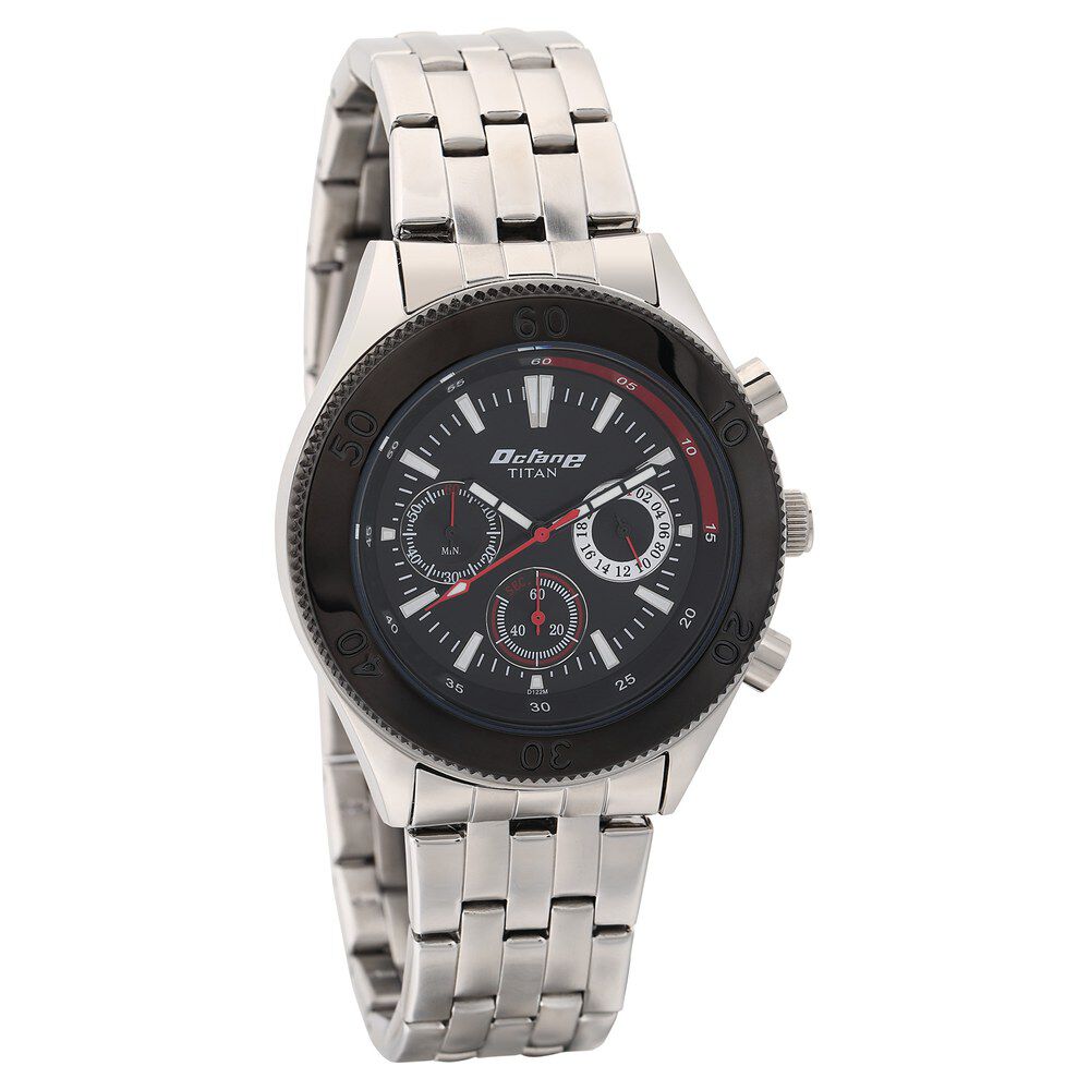 Titan Quartz Multifunction Black Dial Stainless Steel Strap Watch for Men-NM90100SM01