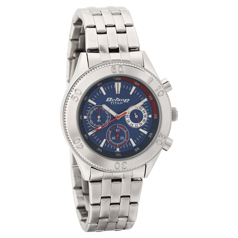Titan Quartz Multifunction Blue Dial Stainless Steel Strap Watch for Men-NN90101SM01