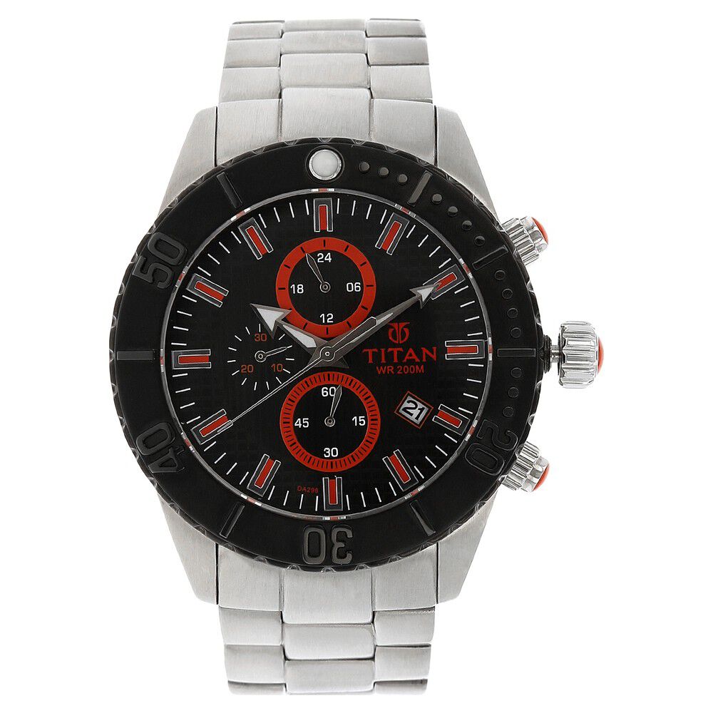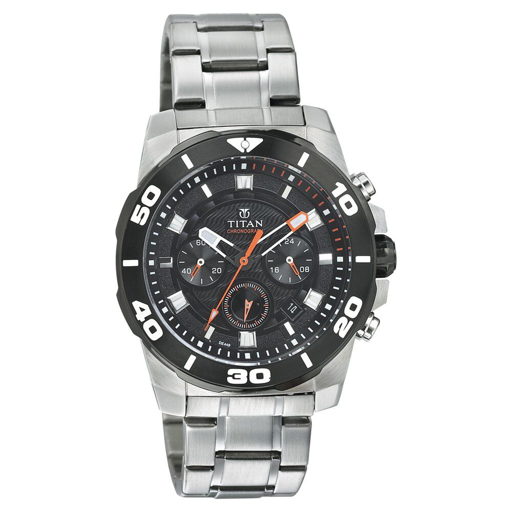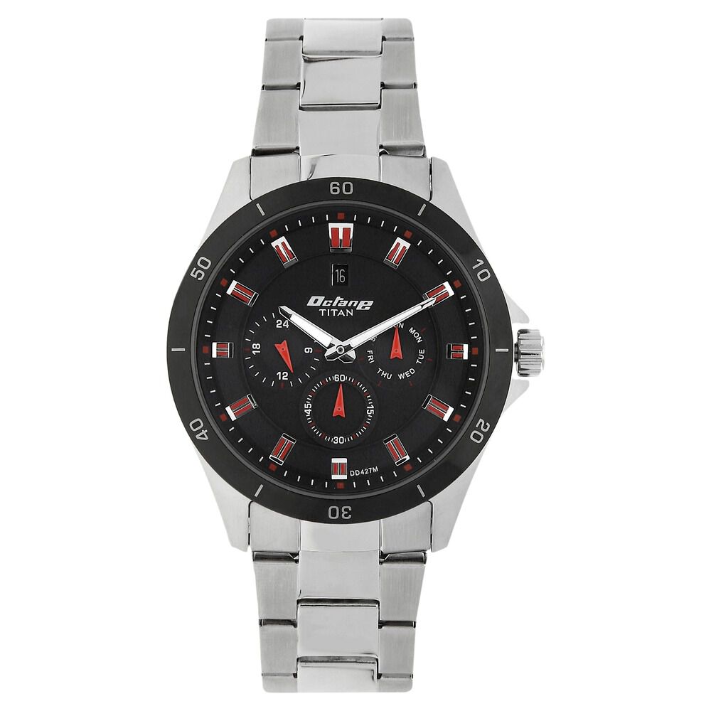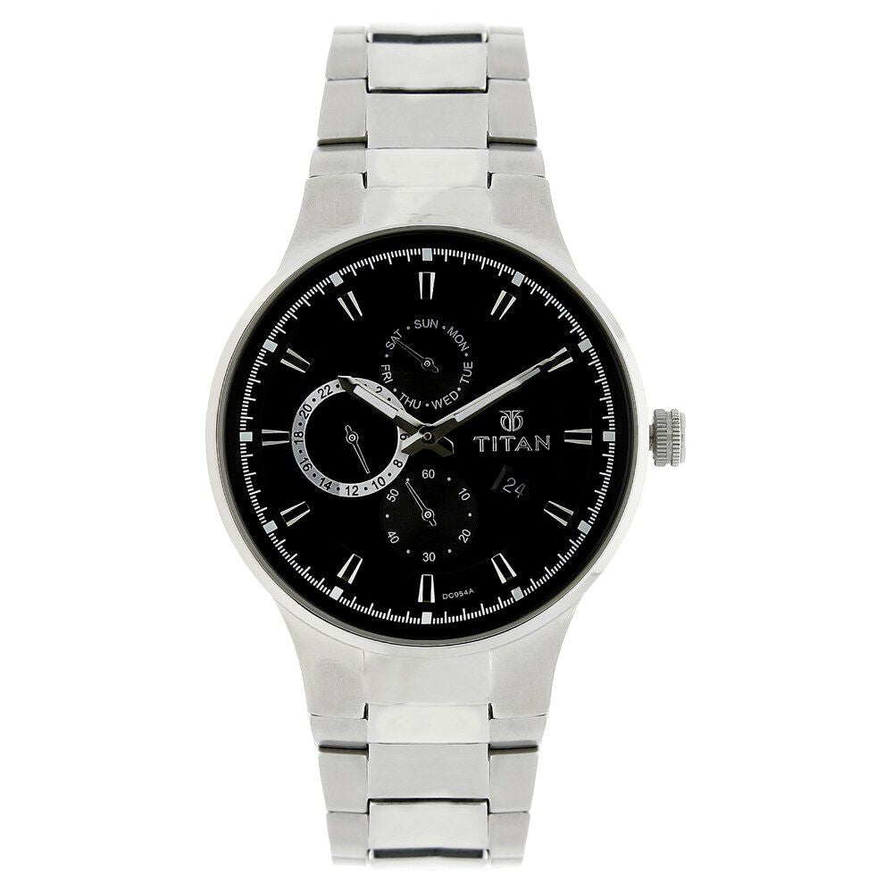 Titan Quartz Analog Black Dial Stainless Steel Strap Watch for Men-NC9379KM01