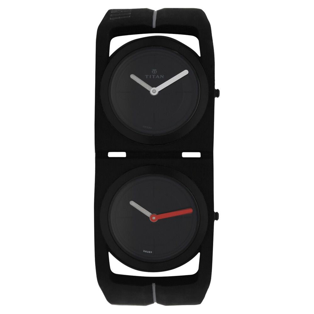 Titan Quartz Analog Black Dial Plastic Strap Watch for Men-9475NP05J