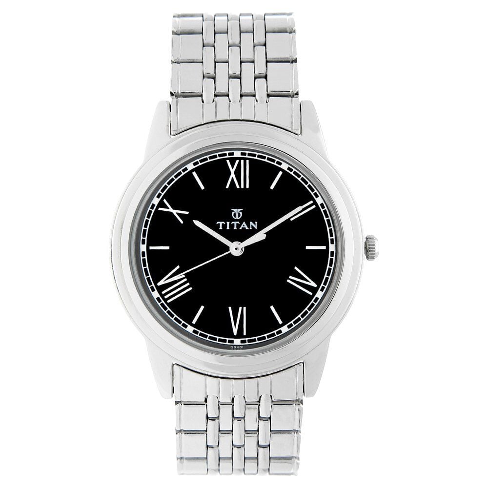 Titan Quartz Analog Black Dial Metal Strap Watch for Men-1594SM02