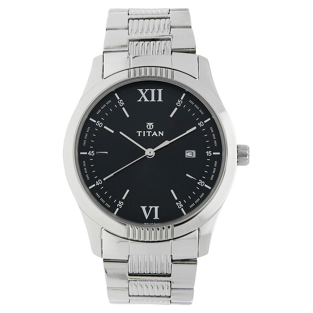 Titan Quartz Analog Black Dial Stainless Steel Strap Watch for Men-NF1586SM02C